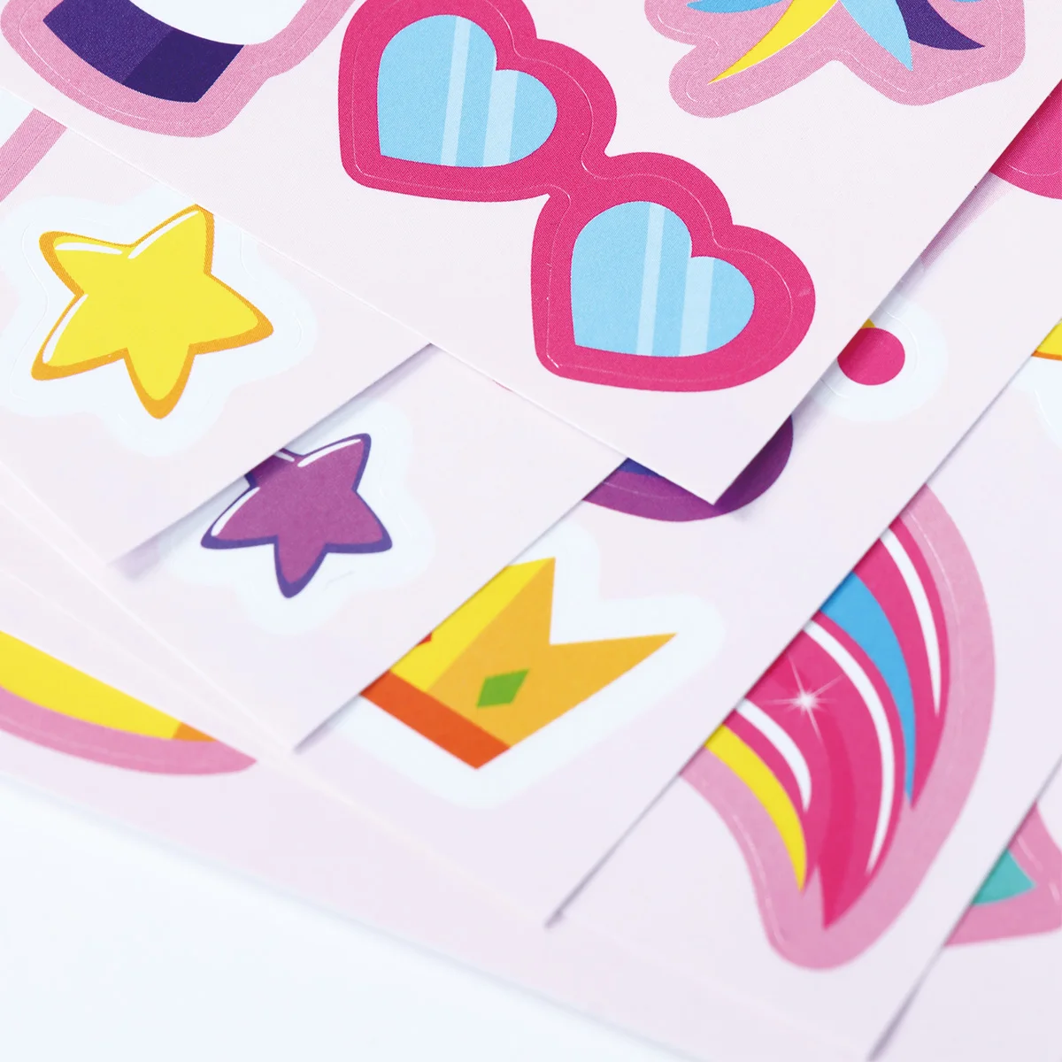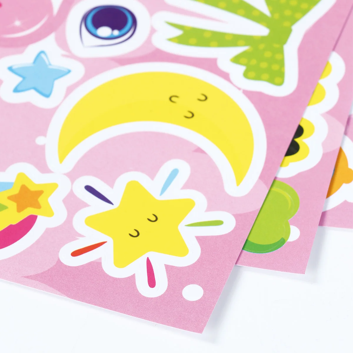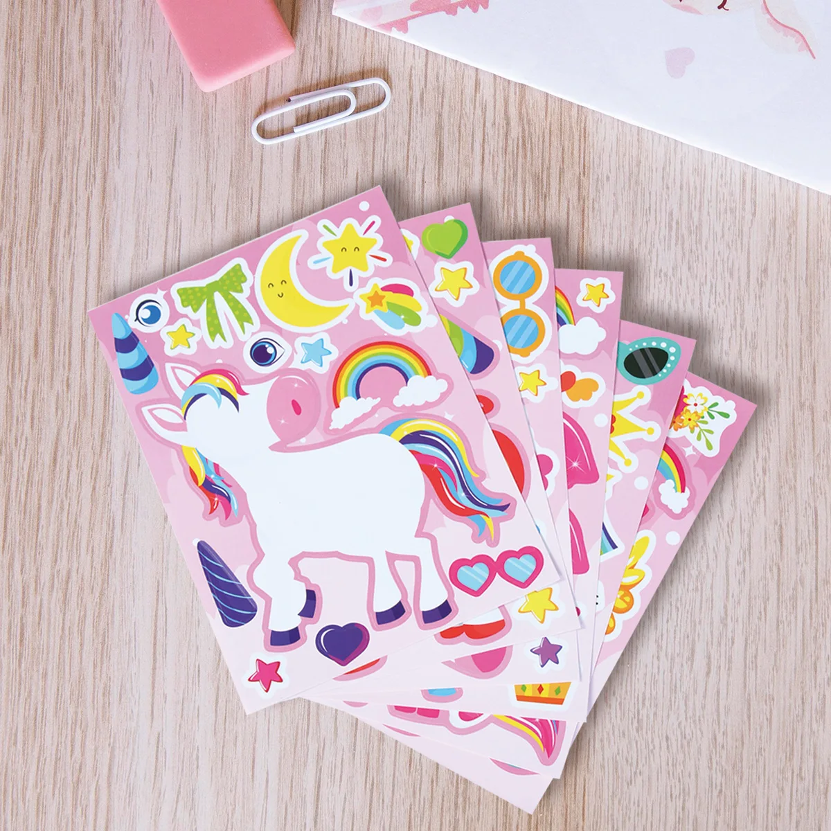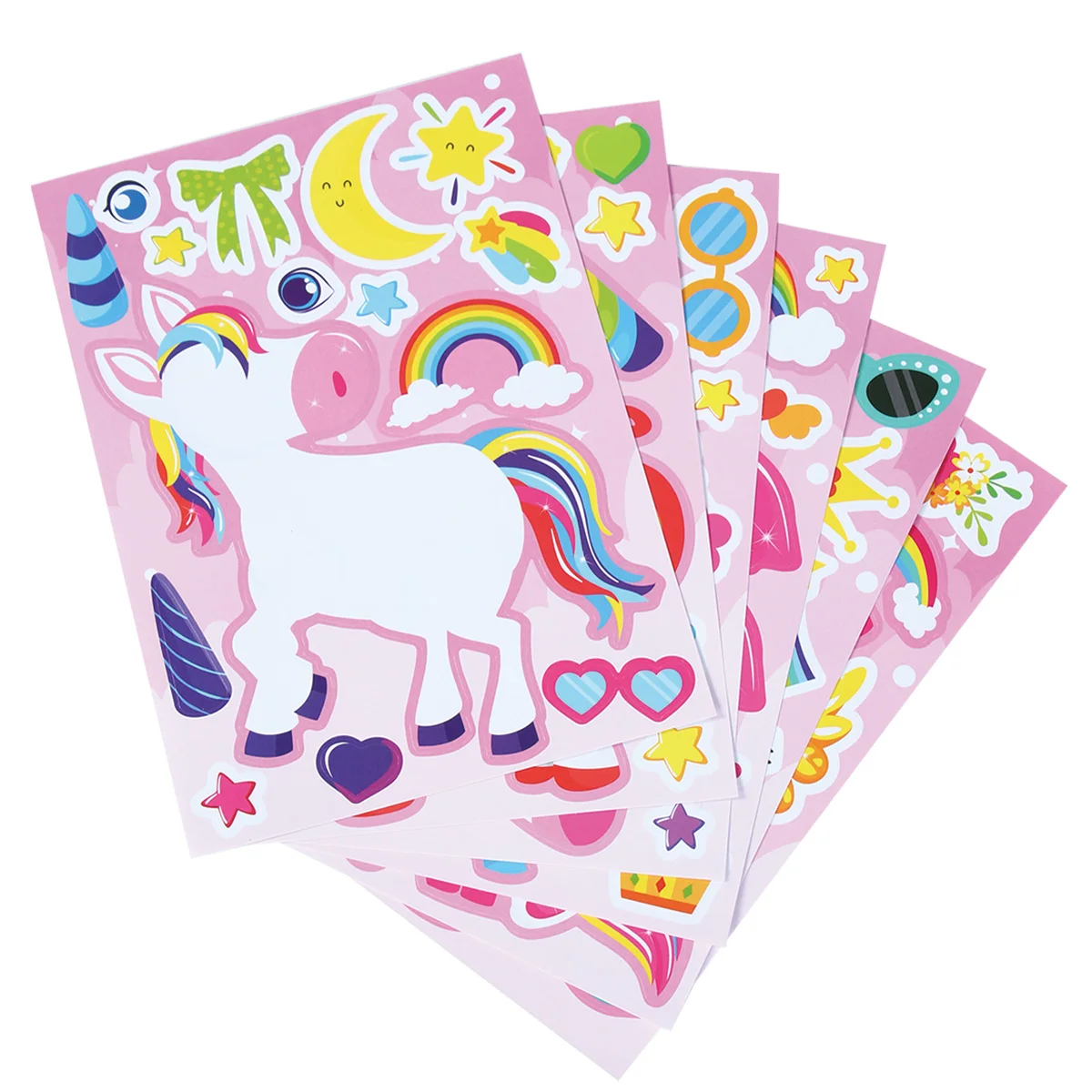 12 hojas de pegatinas de rompecabezas DIY de caballo arcoíris para niños, juegos de unicornio, fiesta de cumpleaños, hacer una cara, divertidas pegatinas de rompecabezas para montar, regalos