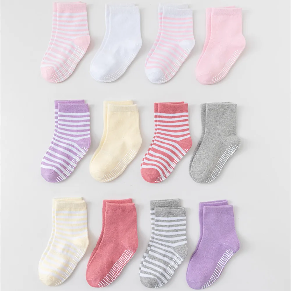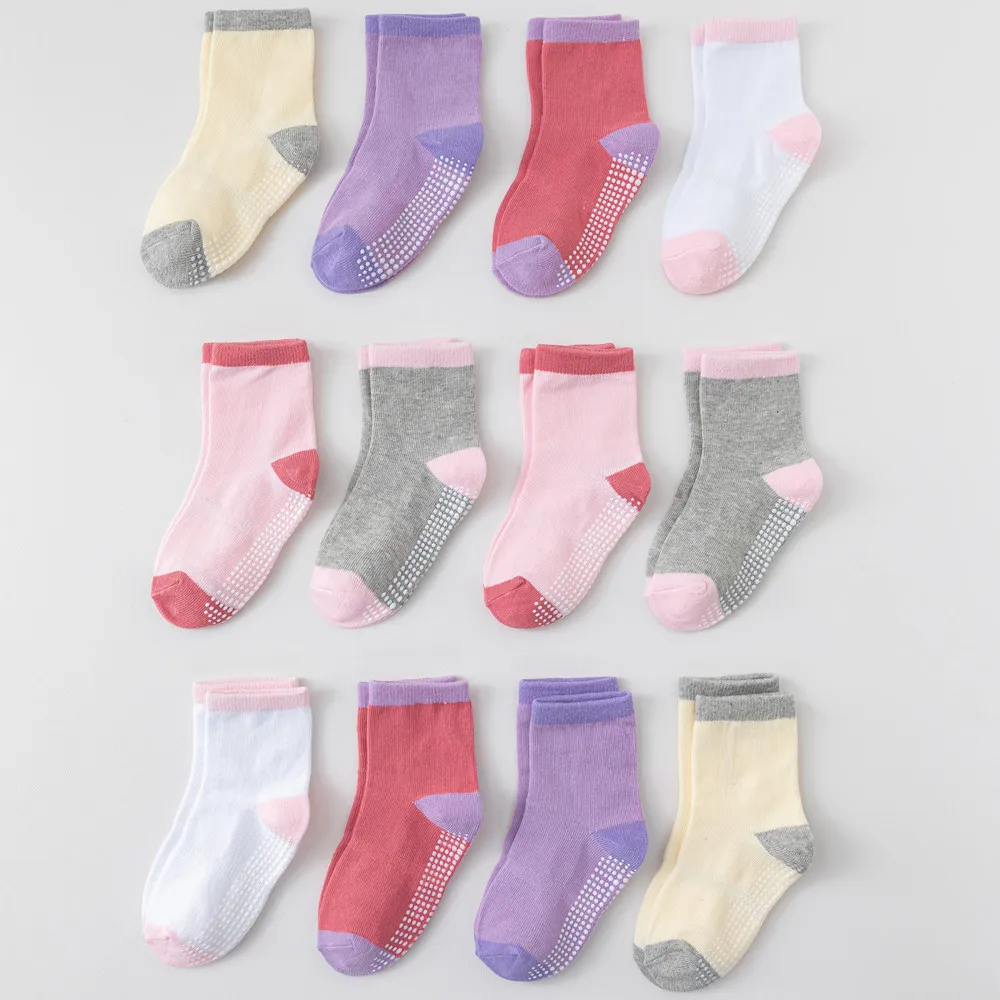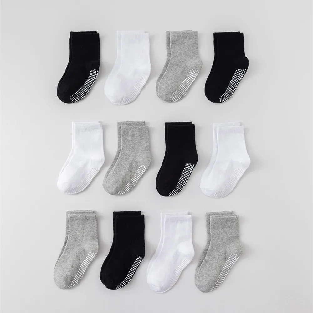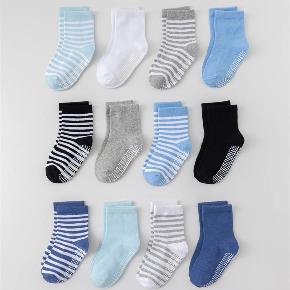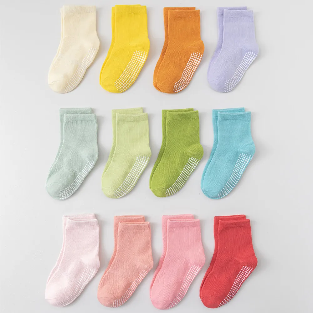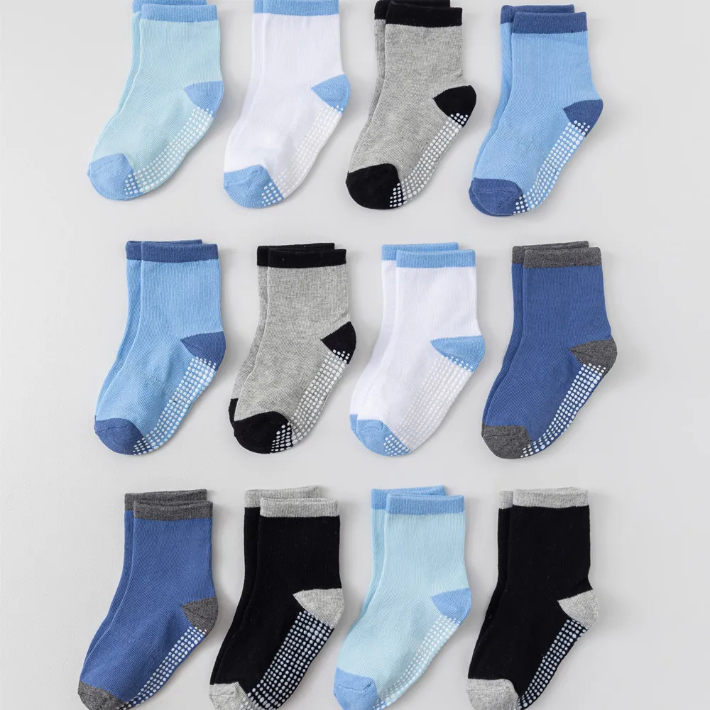 Comprar 12 pares de calcetines antideslizantes para bebés, suelas antideslizantes para niños y niñas, calcetines de algodón Unisex para recién nacidos y niños pequeños de 0 a 7 años
