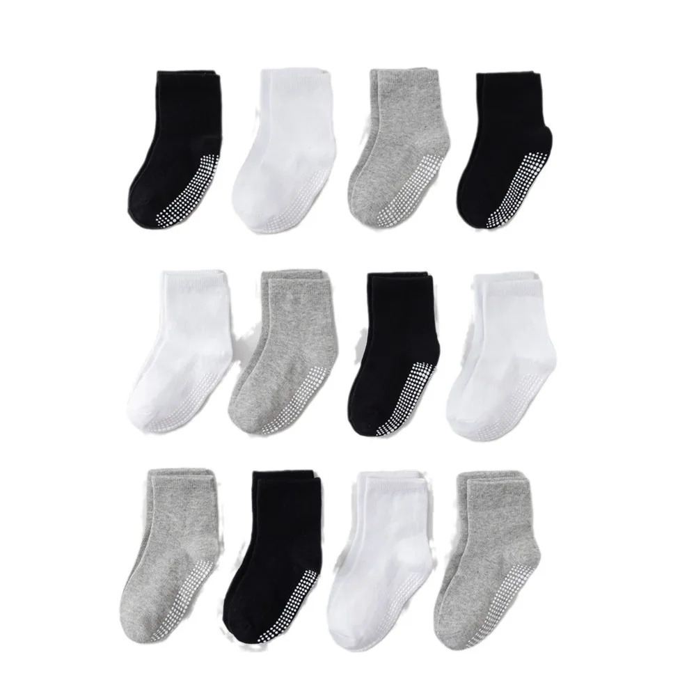 Comprar 12 pares de calcetines antideslizantes para bebés, suelas antideslizantes para niños y niñas, calcetines de algodón Unisex para recién nacidos y niños pequeños de 0 a 7 años