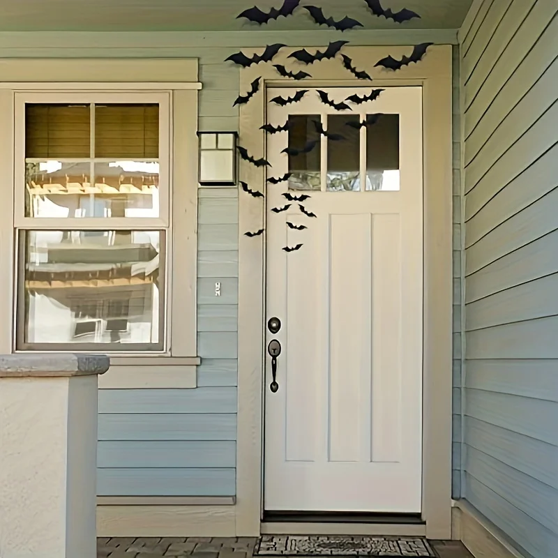 12 Uds. De murciélagos colgantes para decoración al aire libre de Halloween, murciélagos voladores grandes de plástico, 3 tamaños para colgar en árboles, porches, patios, césped, Halloween en interiores
