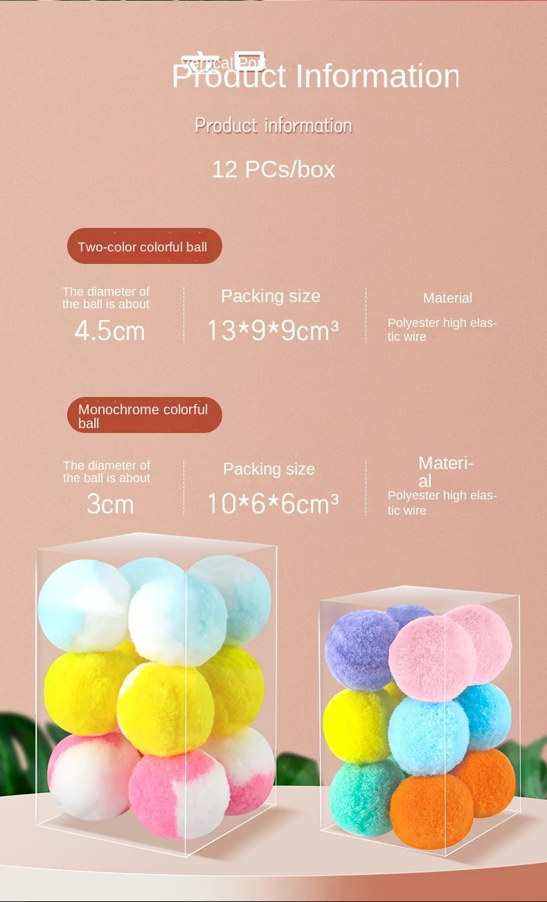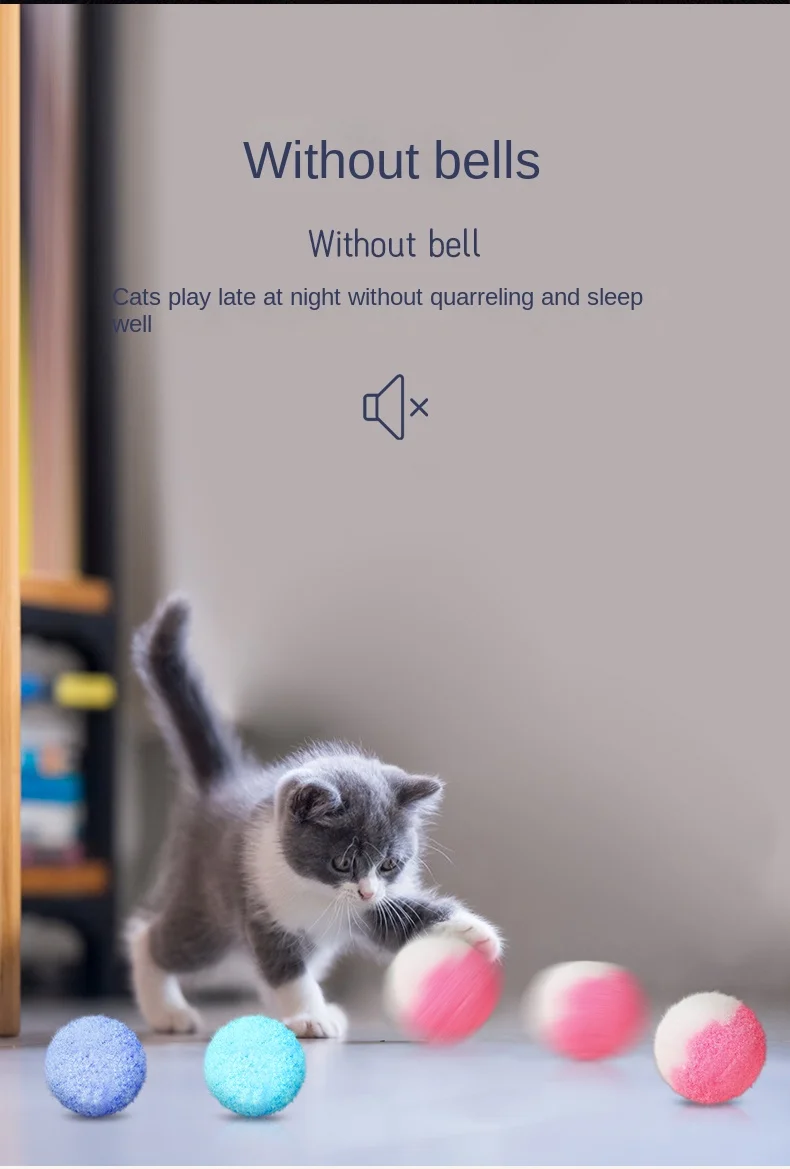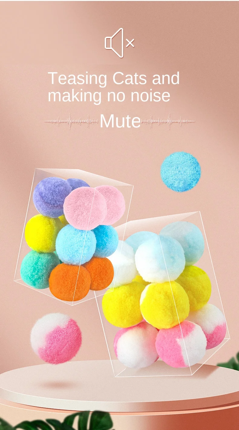 12 Uds. Pelotas de juguete elásticas para gatos de peluche, 3CM, 5CM, juguetes interactivos silenciosos y hinchables para entrenamiento de mascotas para gatitos