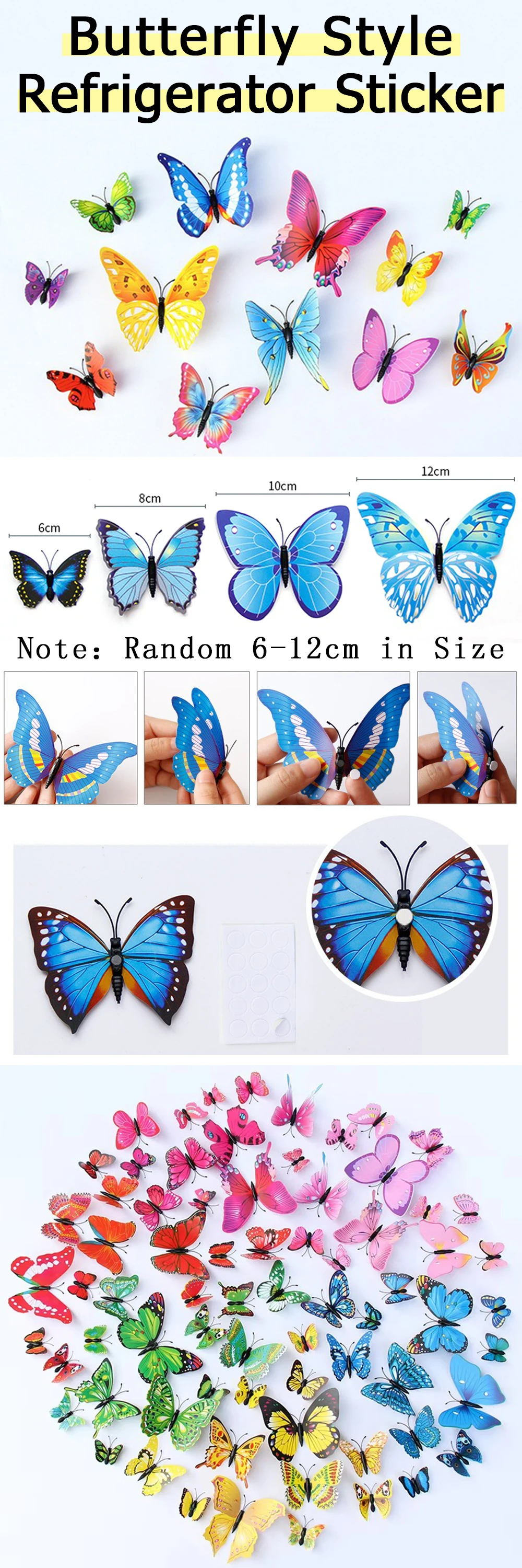 El paquete incluye: 12 pegatinas de mariposa.