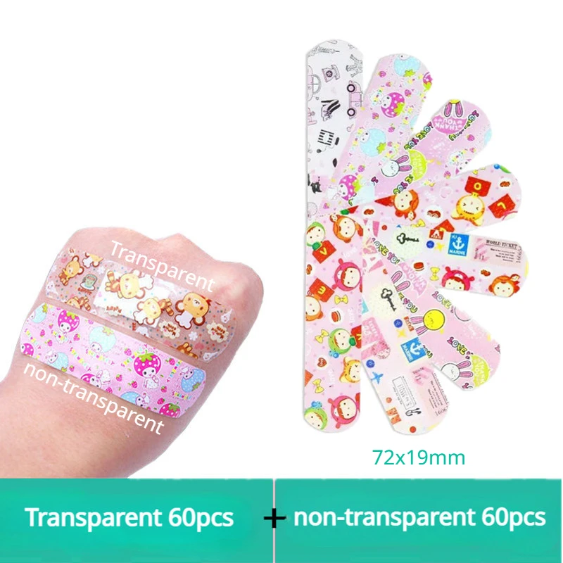 120 unids/set de tirita transparente/no transparente de dibujos animados, tiras de primeros auxilios de yeso bonitas, parche de vendaje para heridas, vendajes adhesivos