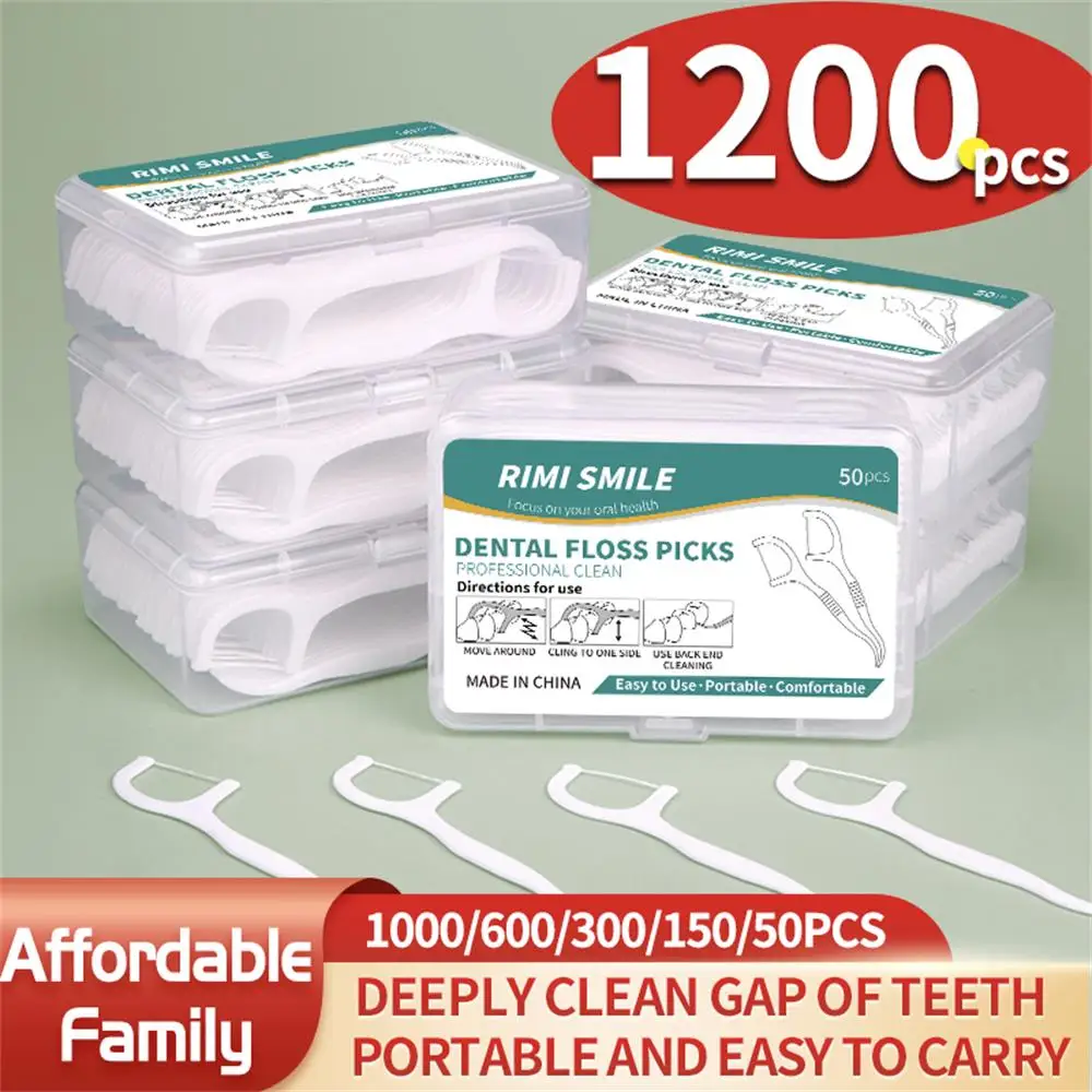 Comprar 1200 Uds. Palillos de hilo Dental desechables, palos de limpieza interdentales en caja portátiles para higiene Personal de cuidado bucal