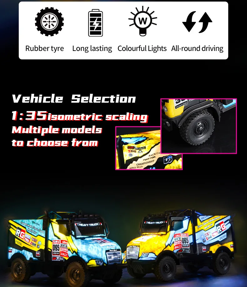 Comprar 1:35 camiones RC coche de carreras de alta resistencia luces luminadas eléctricas Control remoto escalada todoterreno Buggy vehículo 27HZ regalo para niños