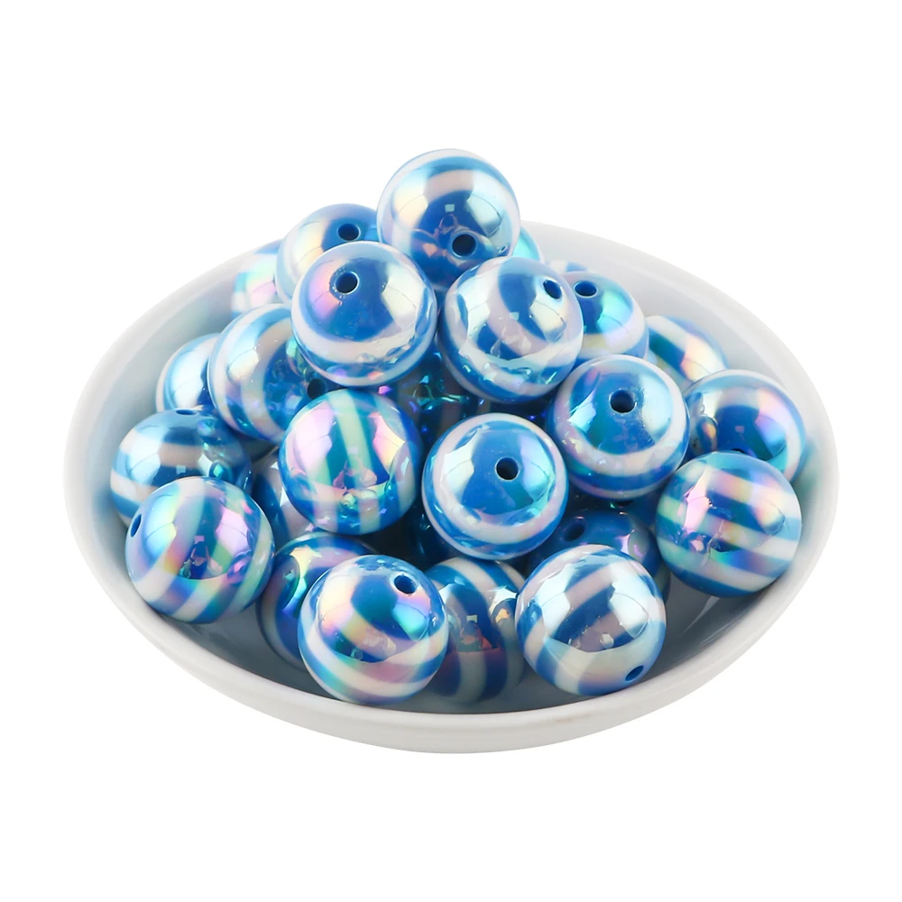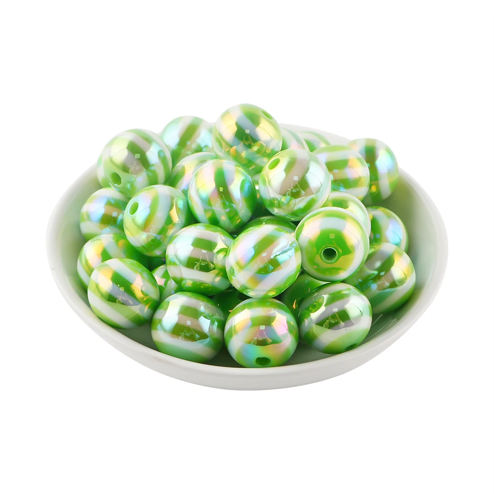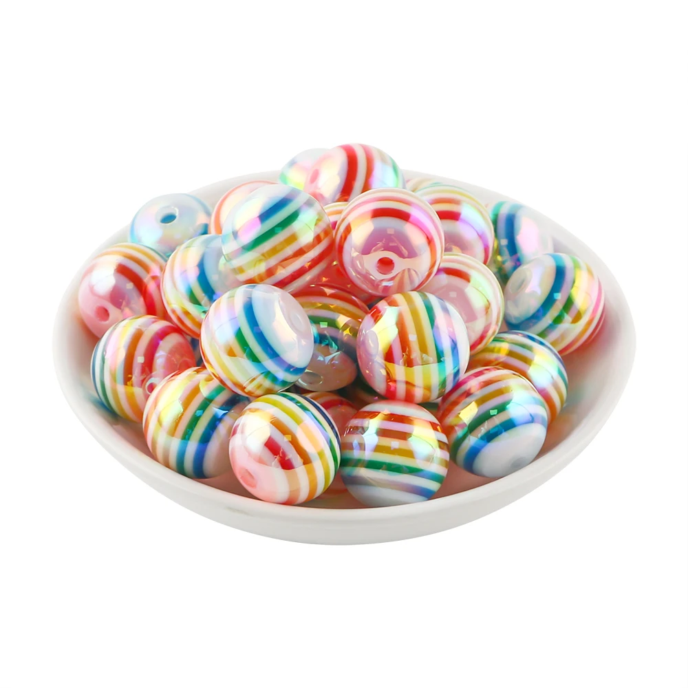 10-20Pcs 16MM Plated Color Stripe Grid Pattern Acrylic Beads For Making DIY Keychain Bracelet Pen Etc Handmade Products