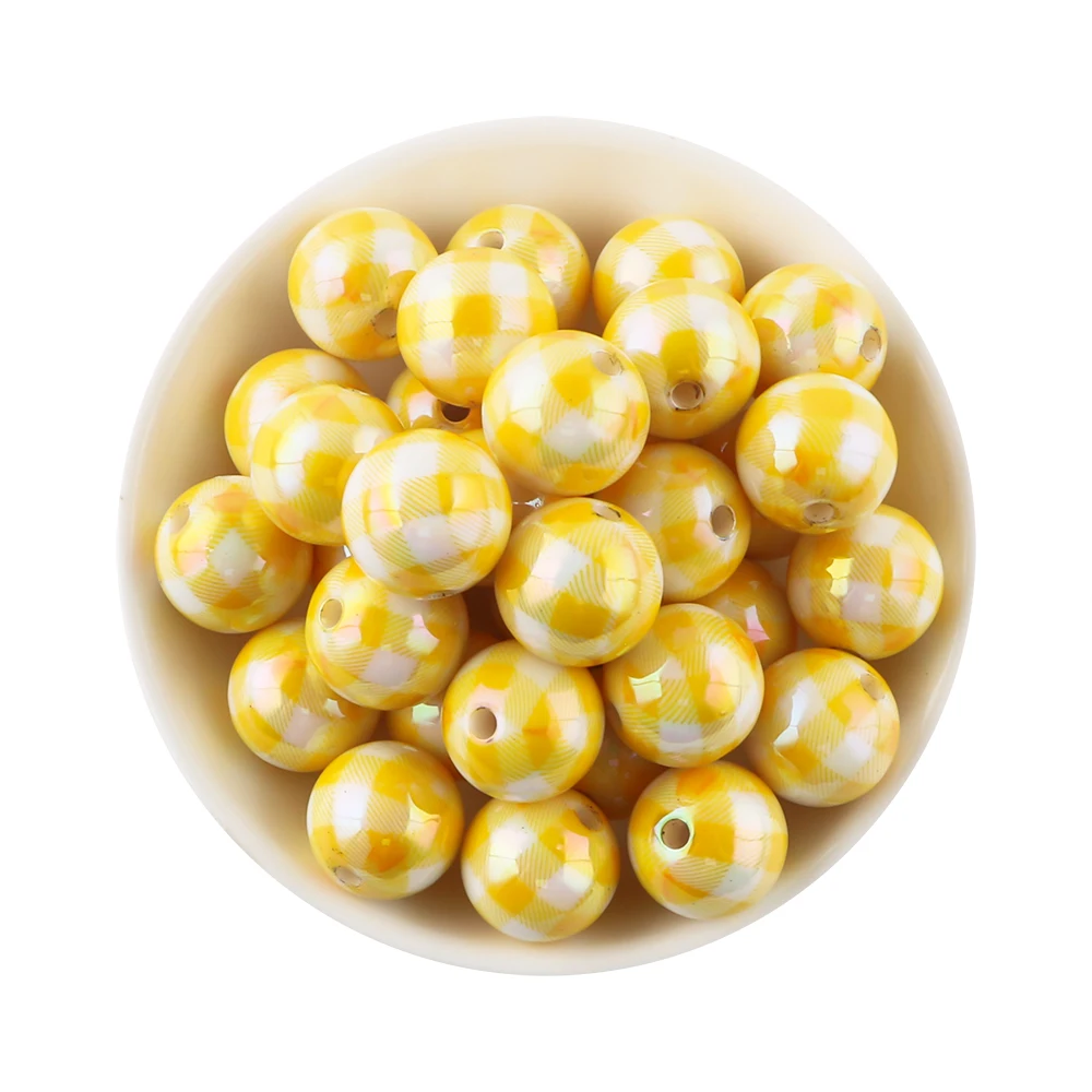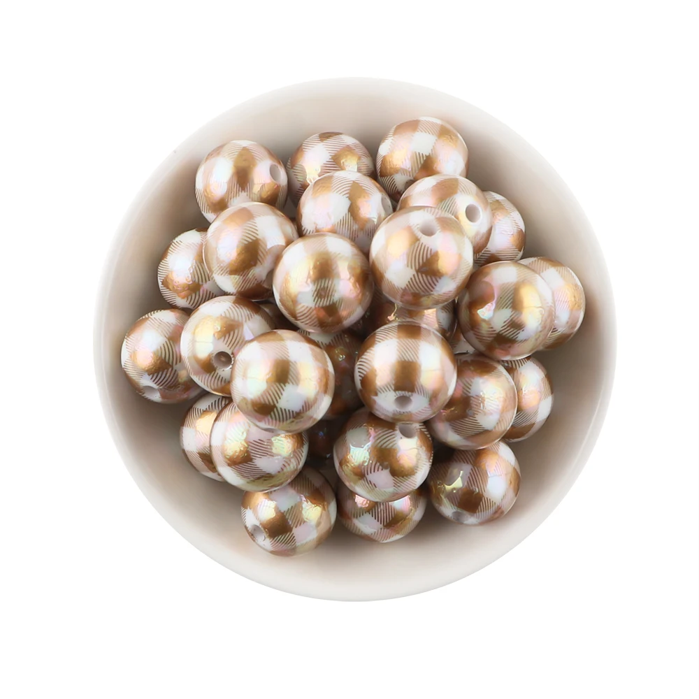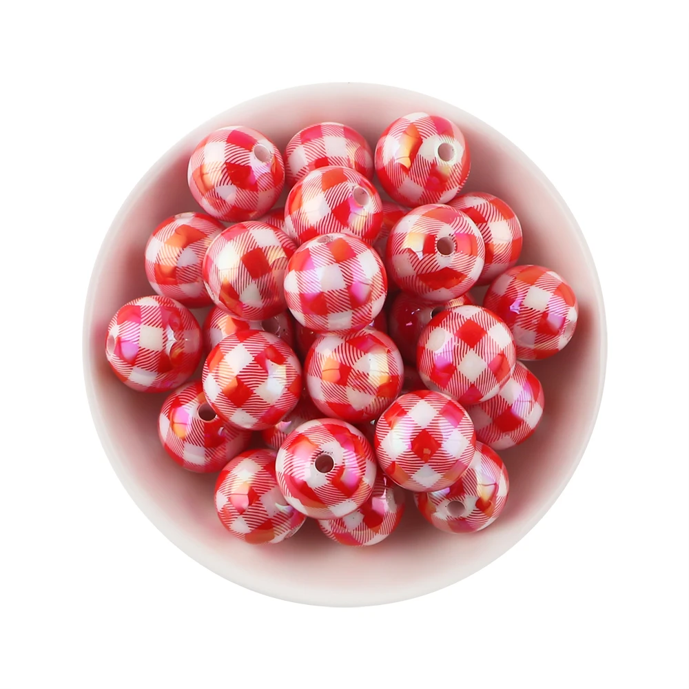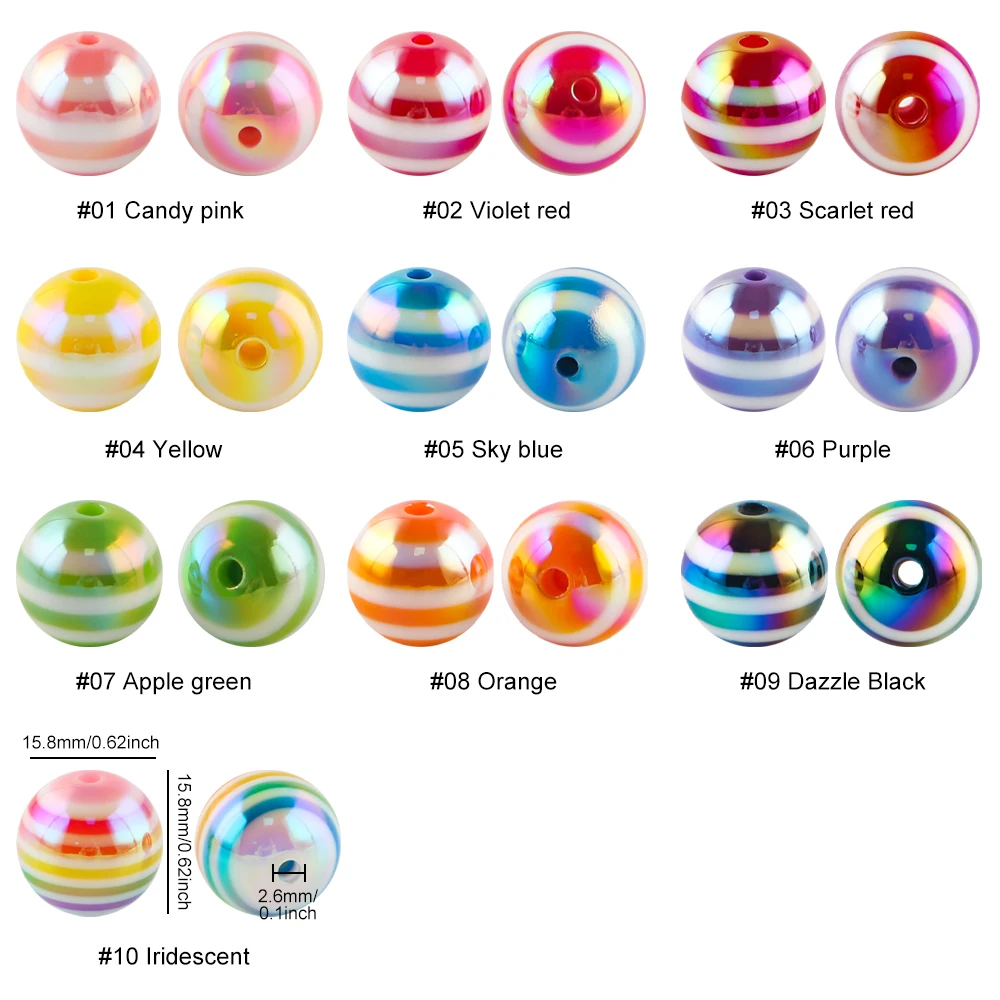 10-20Pcs 16MM Plated Color Stripe Grid Pattern Acrylic Beads For Making DIY Keychain Bracelet Pen Etc Handmade Products