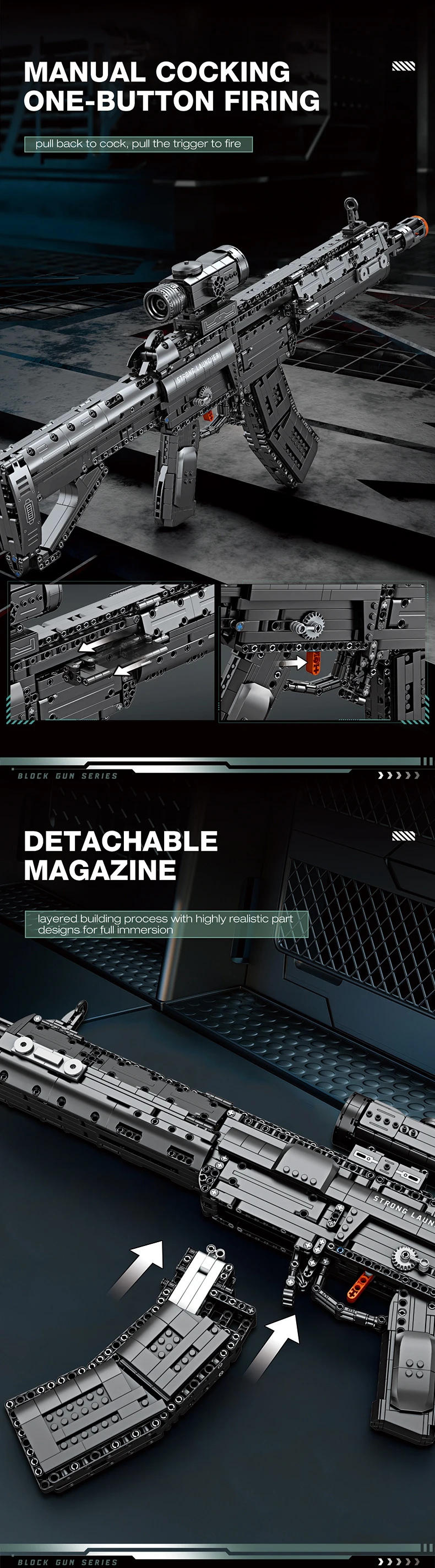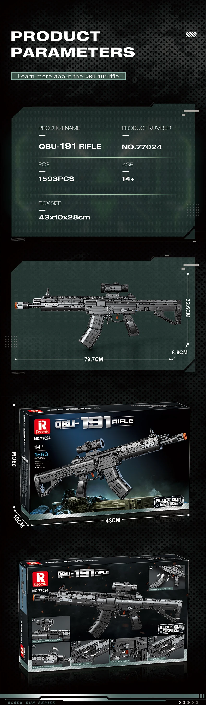 ✨Escala 1:1 y apariencia hiperreaalista: con 1593 ladrillos moldeados con precisión, el juego replica el rifle 191 en una escala 1:1 real, capturando cada detalle desde el elegante cañón del rifle y el agarre texturizado hasta el contorno corporal realista.