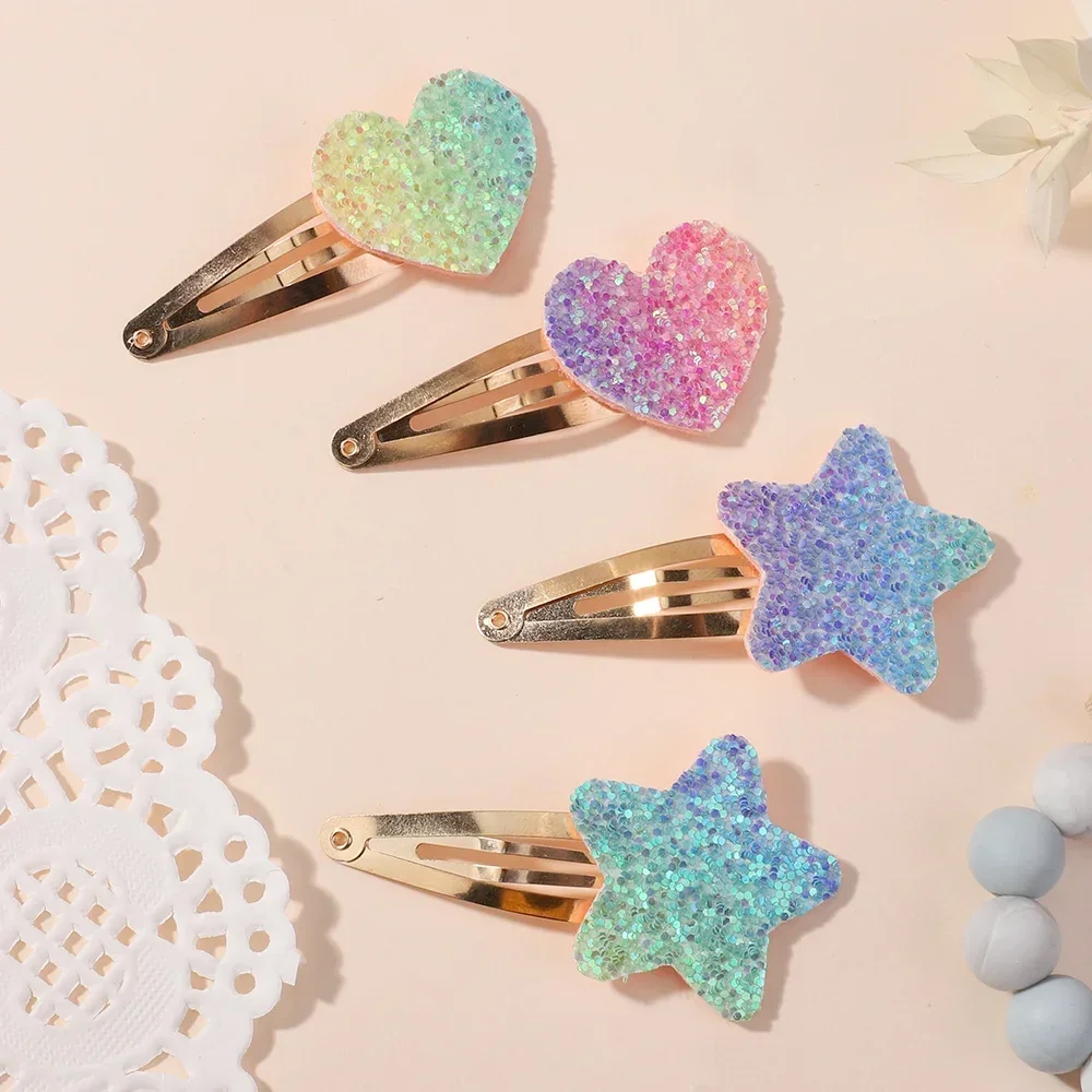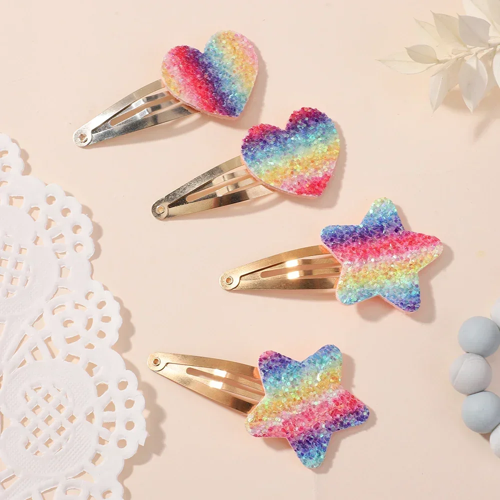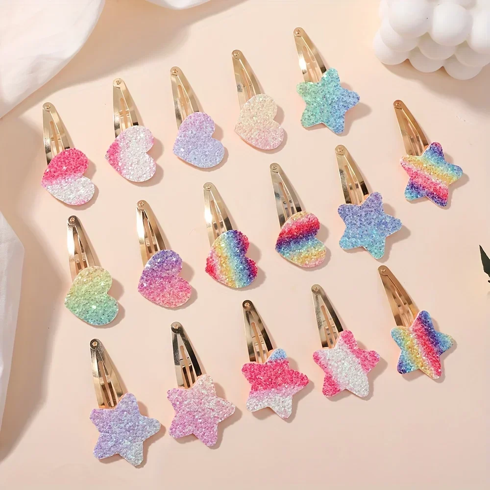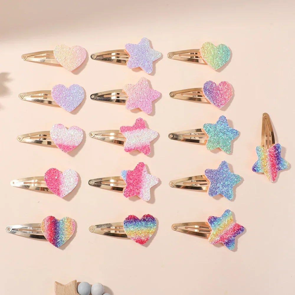 16 unids/set brillo Arco Iris corazón estrella BB pinzas para el cabello hechas a mano para niñas horquillas hechas a mano pasadores lindos accesorios para el cabello