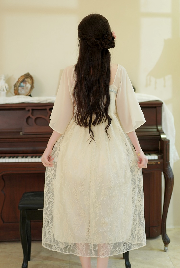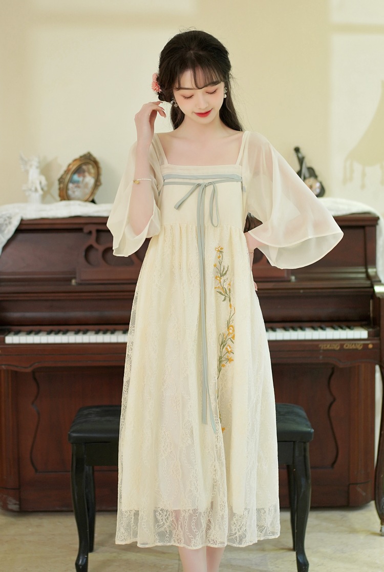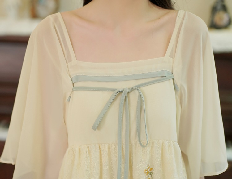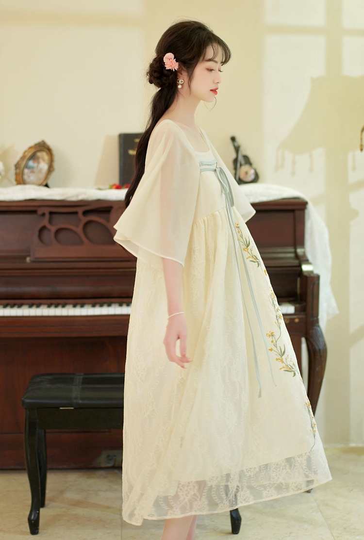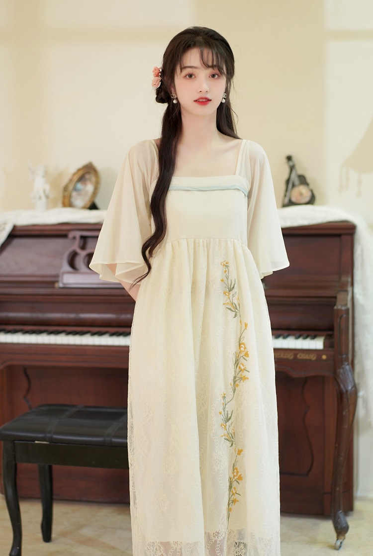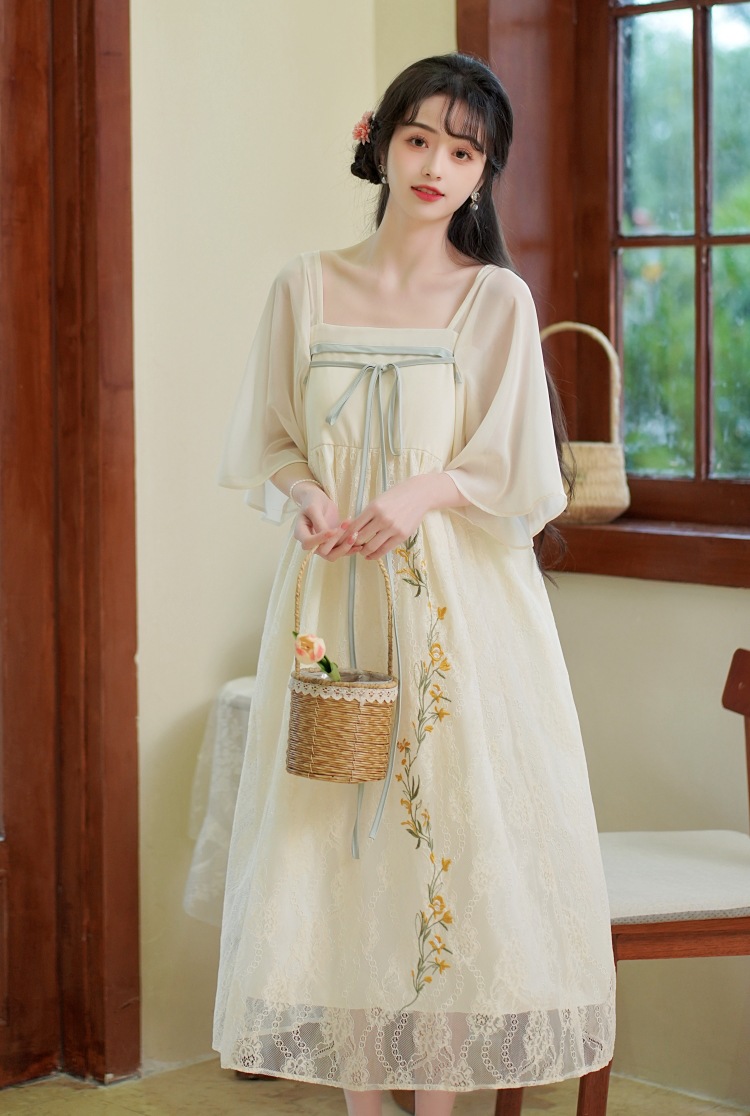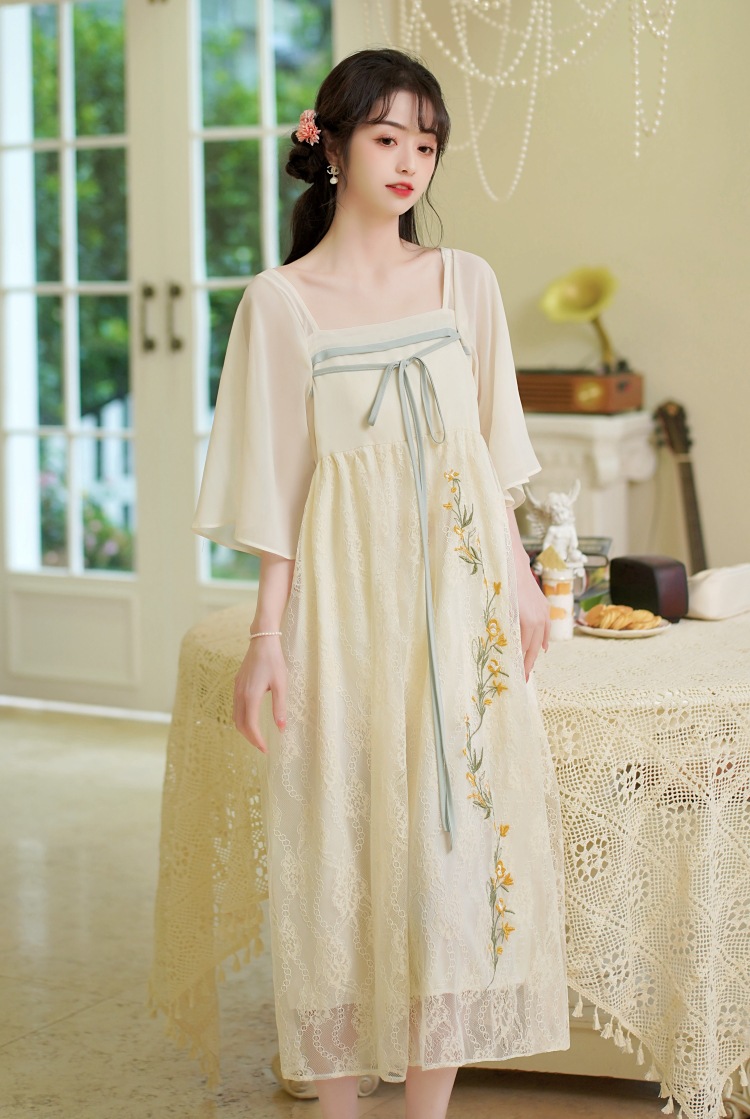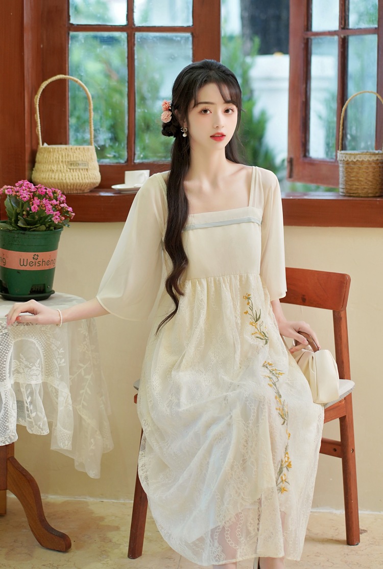 1681 Vestido largo de maternidad de gasa bordada de verano, ropa holgada y recta de estilo Han para mujeres embarazadas, embarazo Vintage