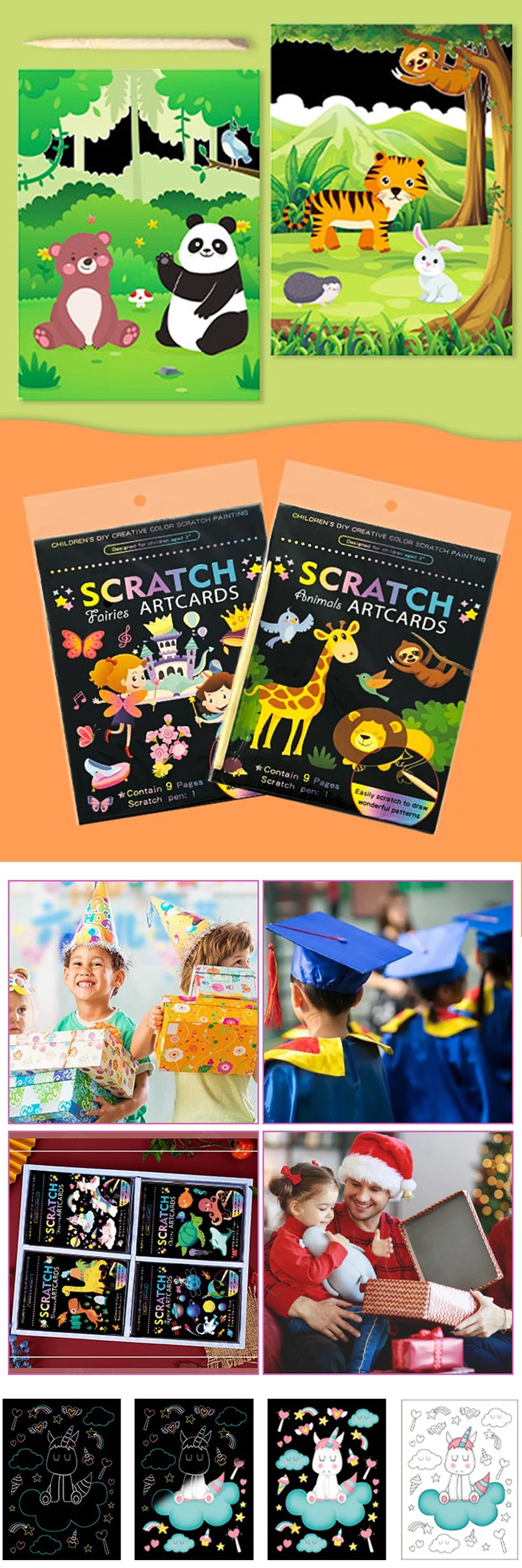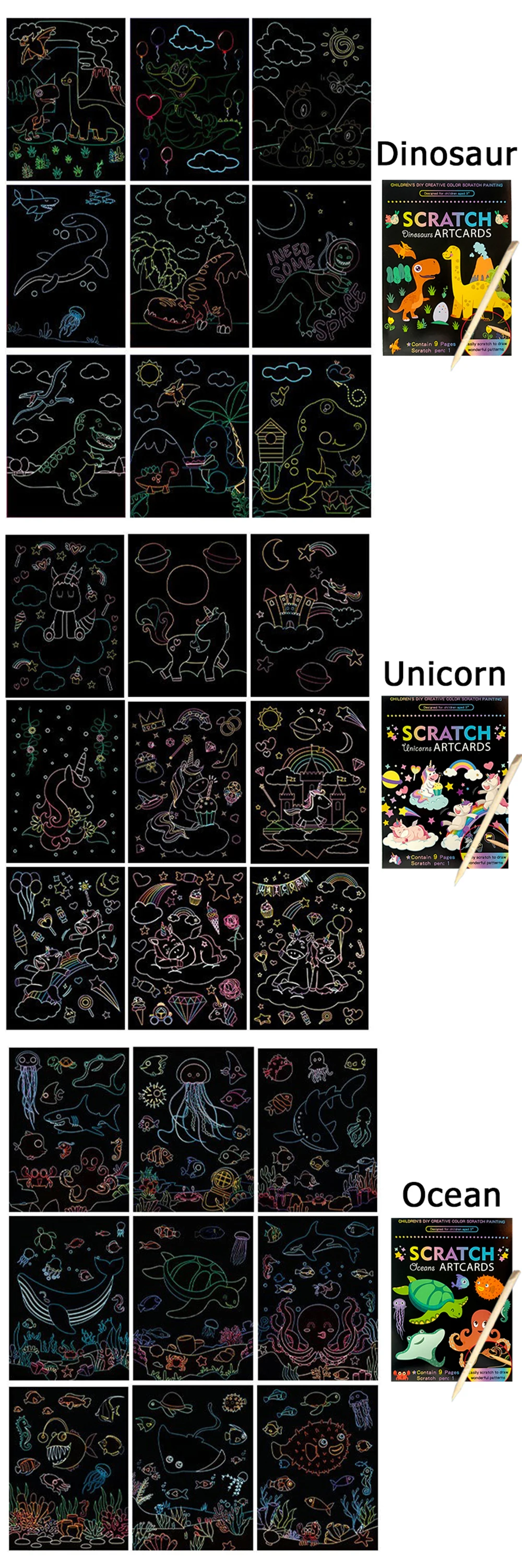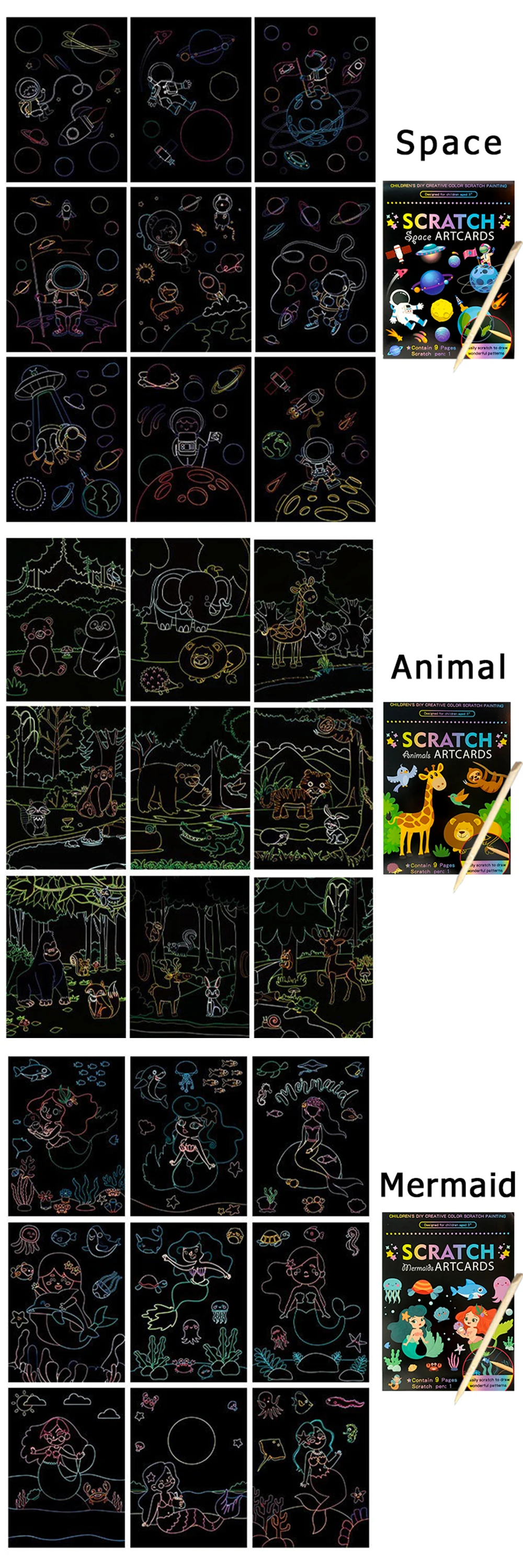 4. Materiales seguros: fabricados con materiales ecológicos, inodoros y seguros, lo que le permite disfrutar de la diversión de rascar pinturas con tranquilidad.