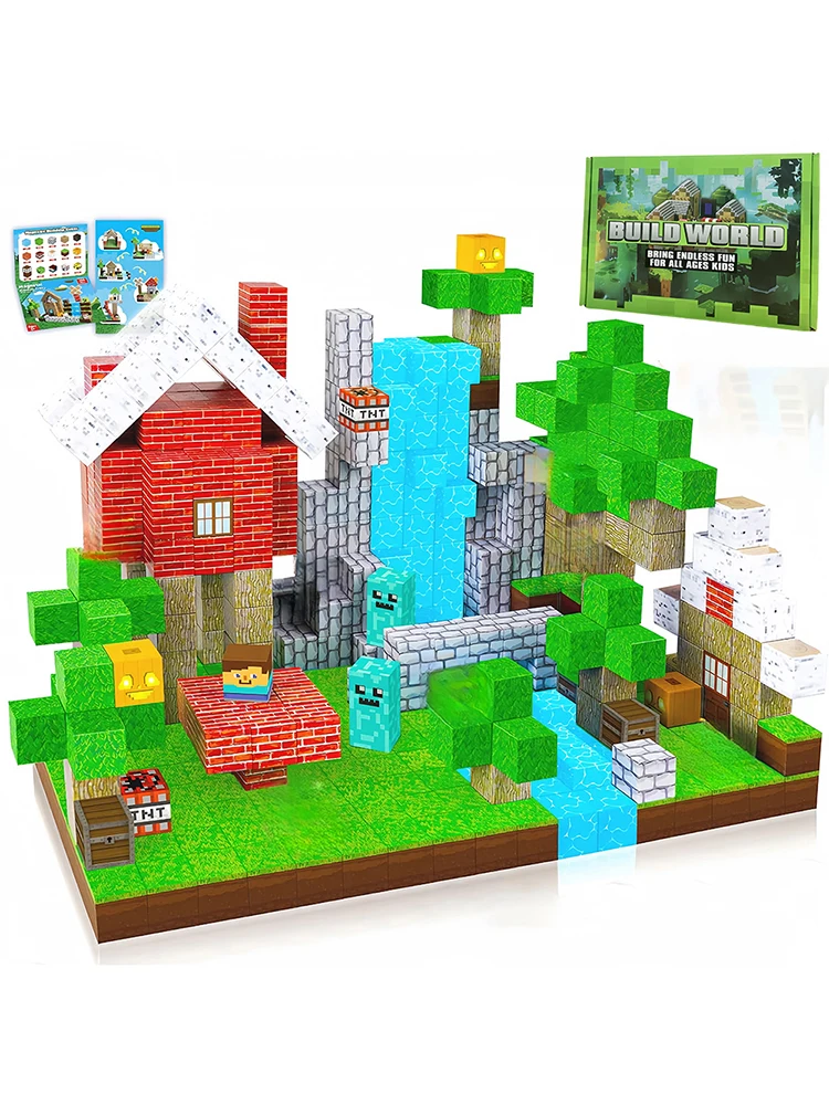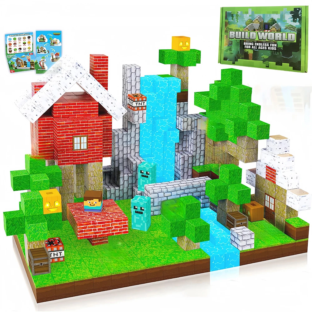 192 Uds. Bloques de construcción magnéticos, juego de juguetes mágicos con imán para construir la mina, juego de construcción de aprendizaje sensorial STEM, juguetes para exteriores, regalos