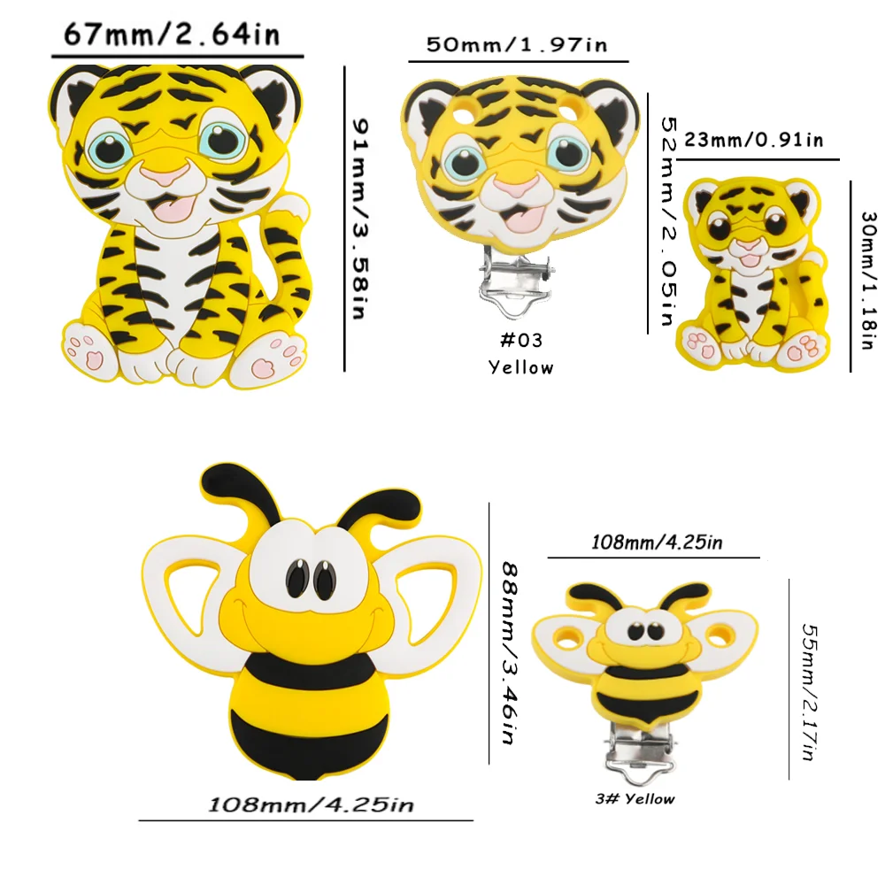 2/3/5 piezas de animales, abeja tigre, cuentas de silicona para masticar, accesorios de cadena de chupete DIY de calidad alimentaria, accesorios para collar y colgante