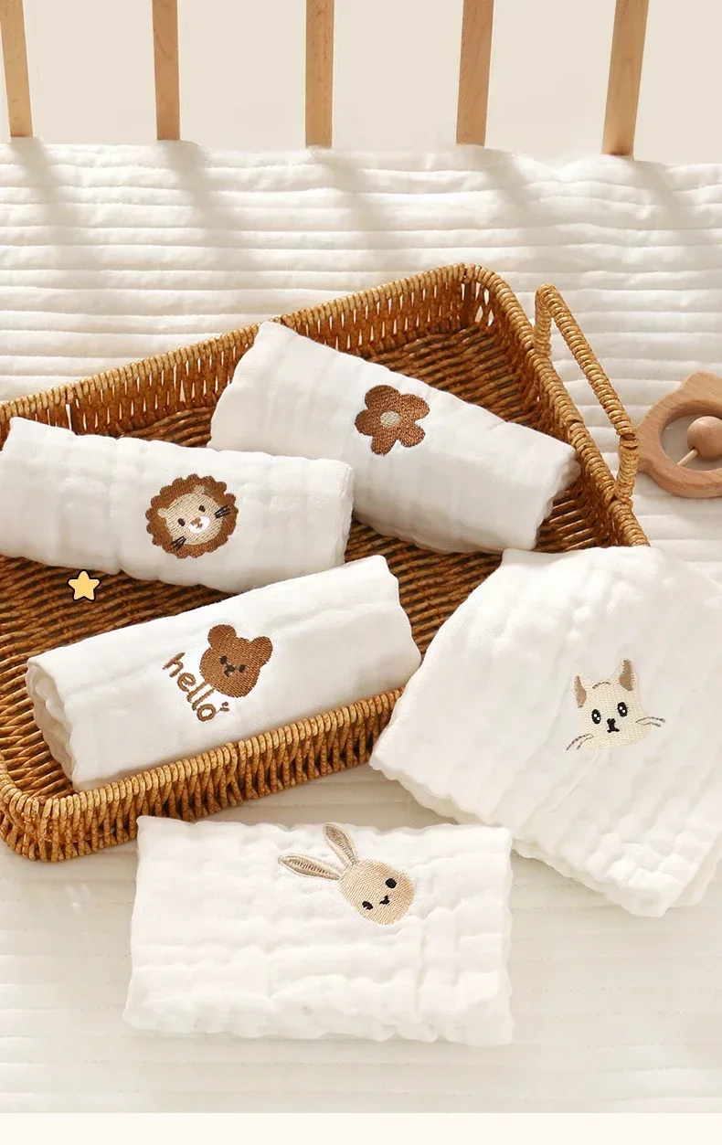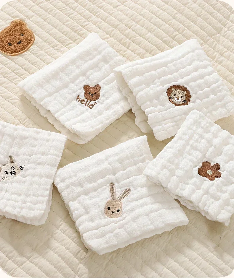 2/3/5 Uds. Toallas para bebés, toallita suave para niños pequeños, paño para eructar, toallitas faciales de mano bordadas de algodón de 6 capas, babero para recién nacidos, pañuelo para niños