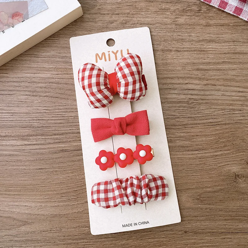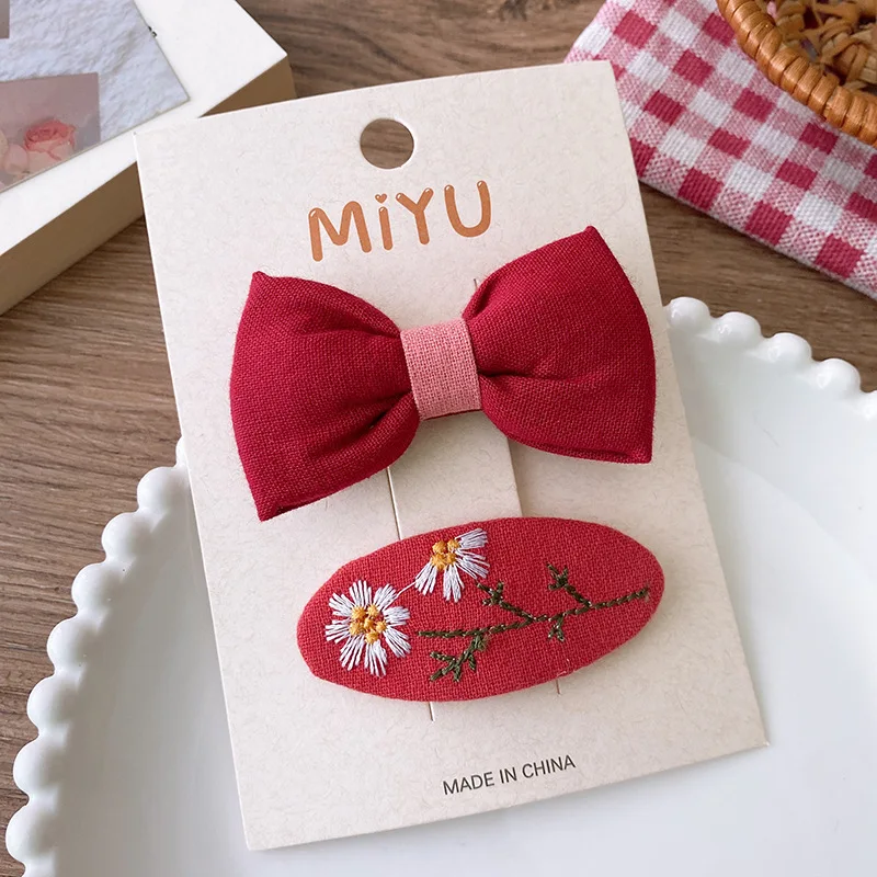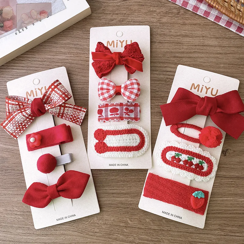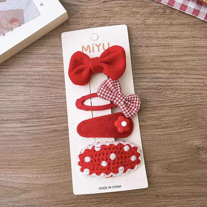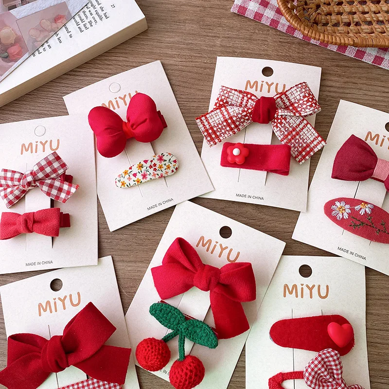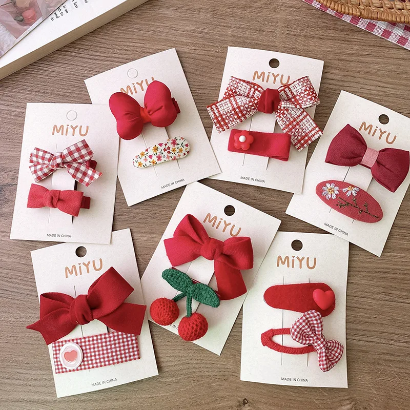 2/4 Uds. Horquillas rojas para el cabello para niñas, Clips de flequillo con lazo de tela, accesorios navideños para el cabello de bebé, Clip de pelo coreano dulce tejido, regalos para niños