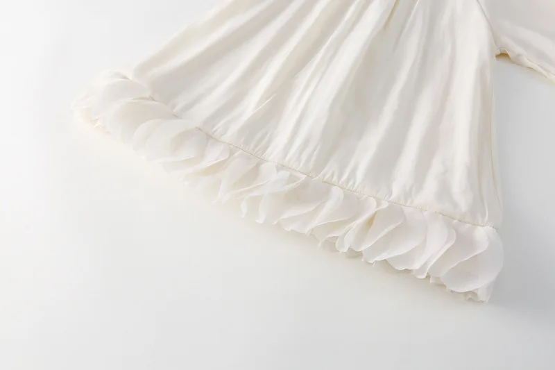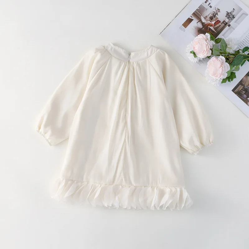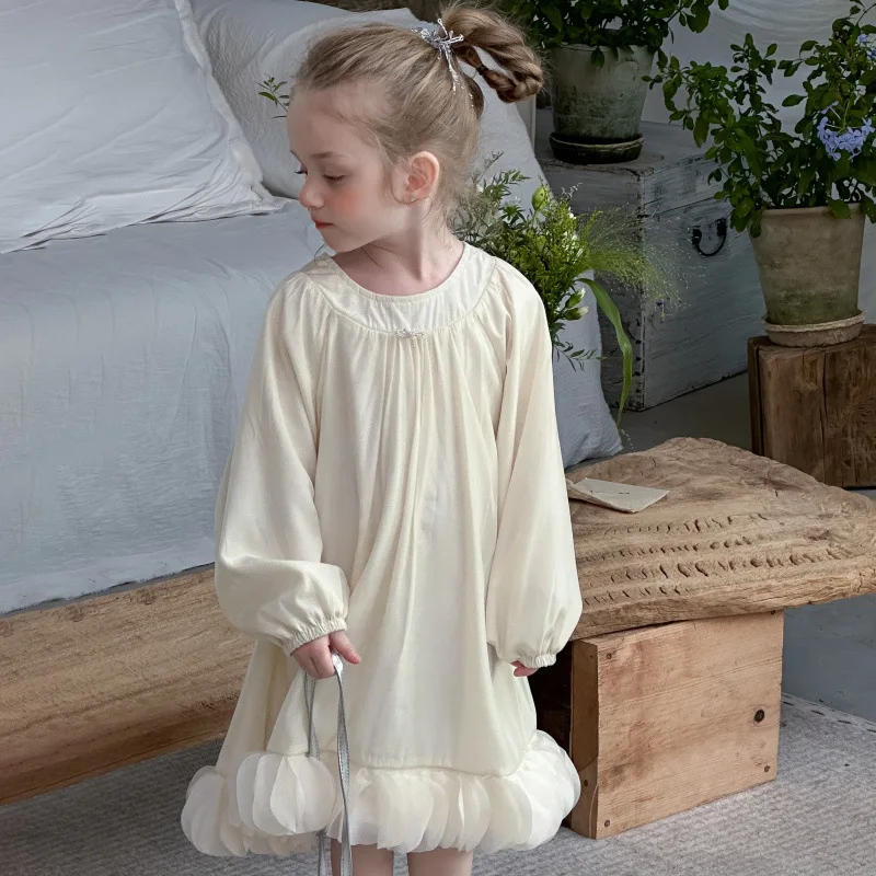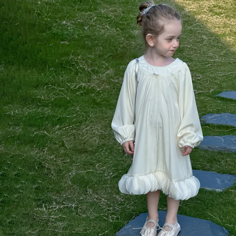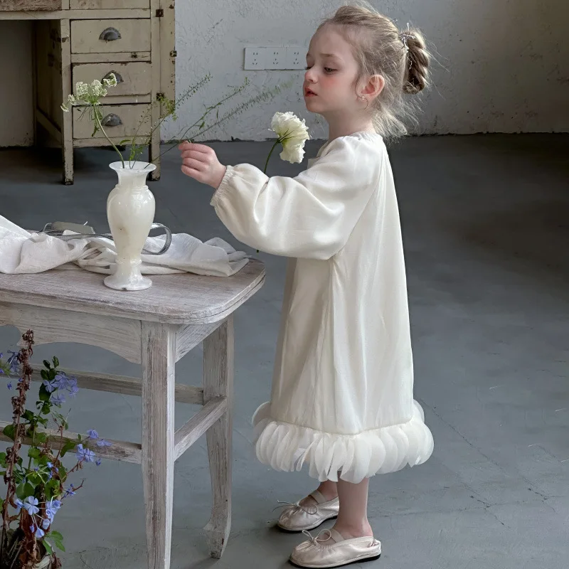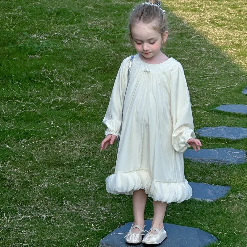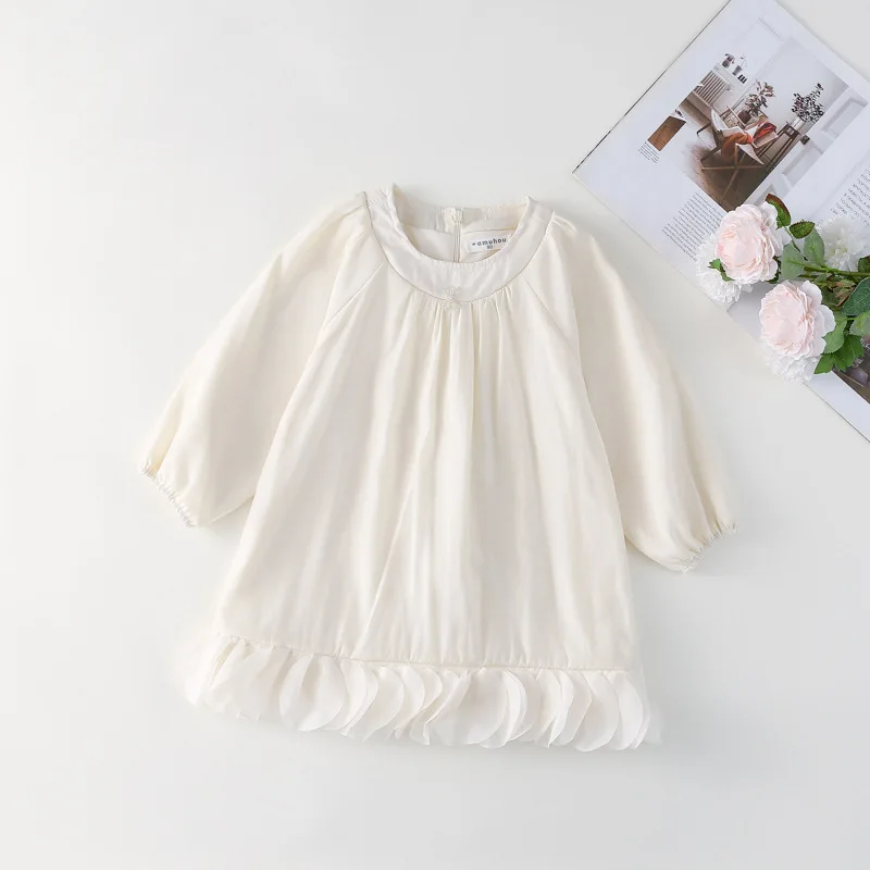 Este vestido presenta un dobladillo de pétalos de estilo francés, que añade un toque de elegancia y sofisticación al guardarropa de tu pequeña.