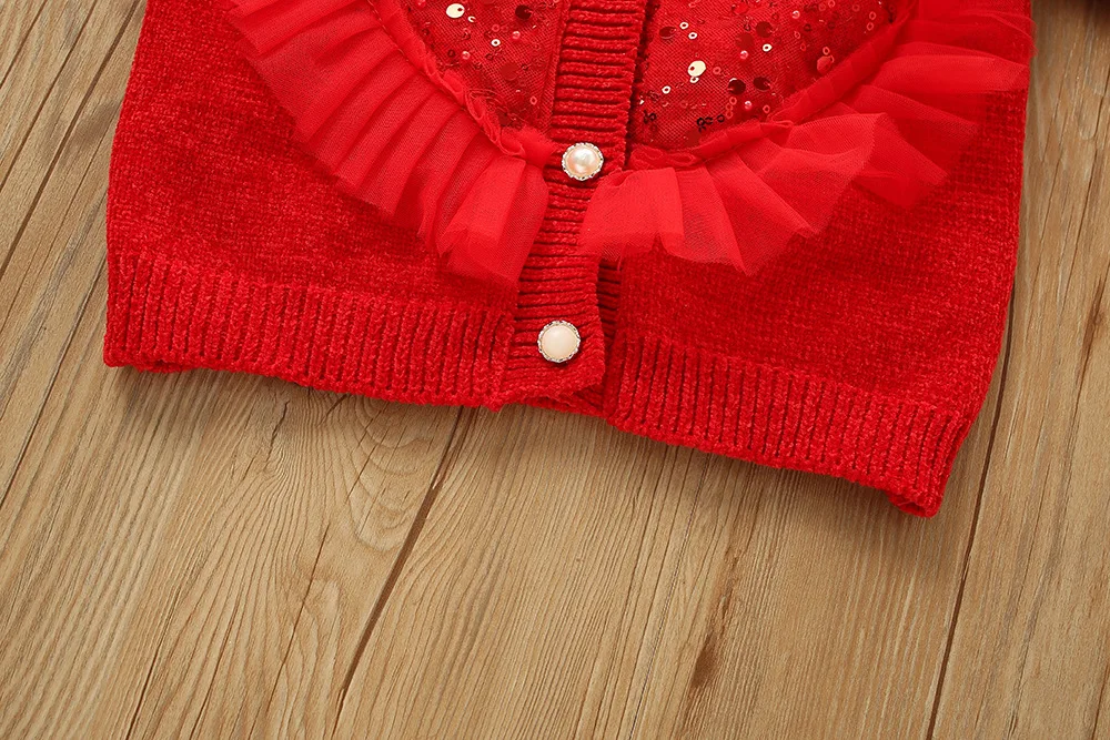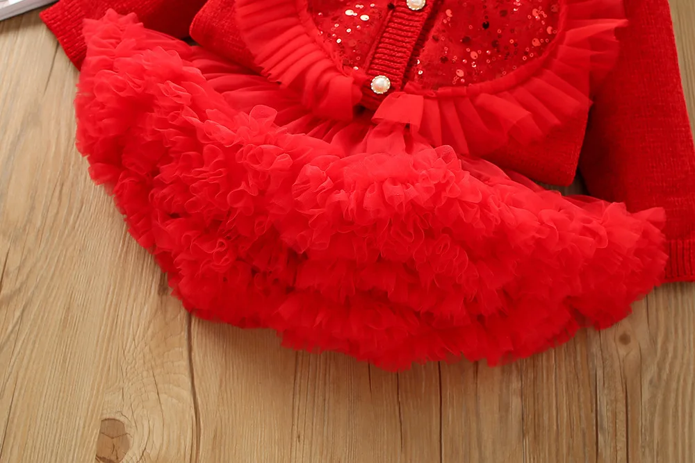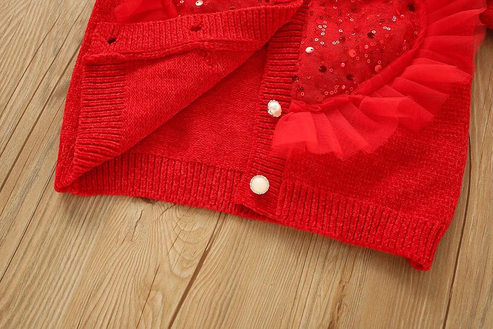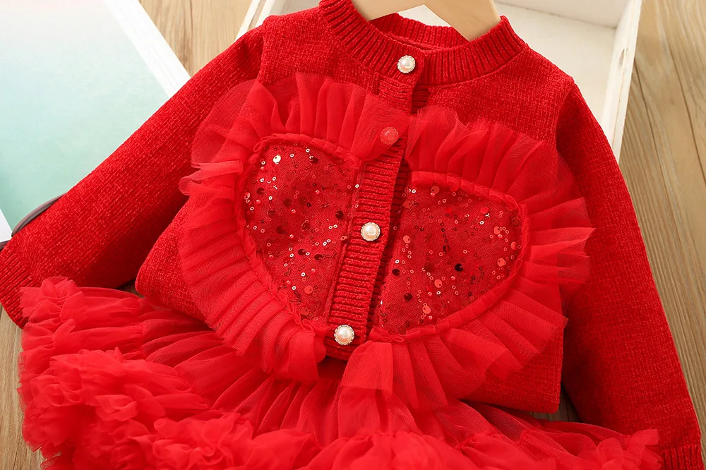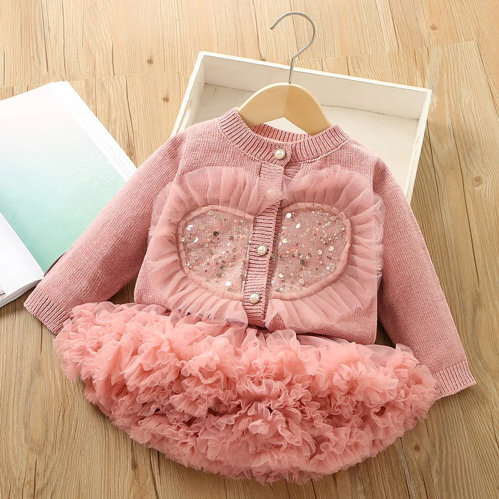 Comprar 2-7Y Girls Clothing Set Big Lace Heart Knitwear Ball Gown Tulle Skirts 2PCs Knit Suit Children Outfit