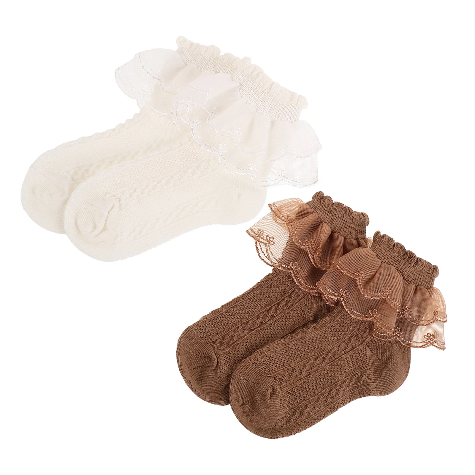 2 pares de calcetines con volantes de encaje de algodón para niñas, suaves, cómodos, transpirables, ideales para espectáculos de danza y tiempo de juego.
