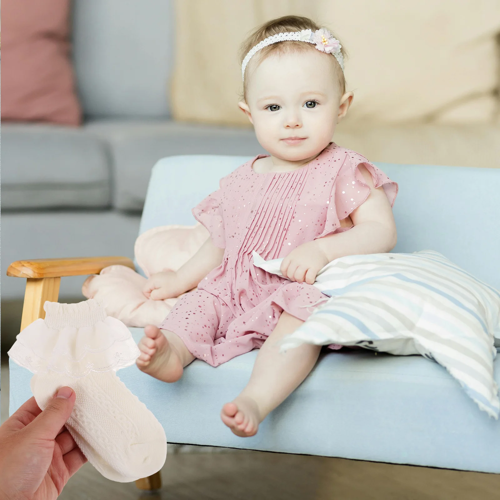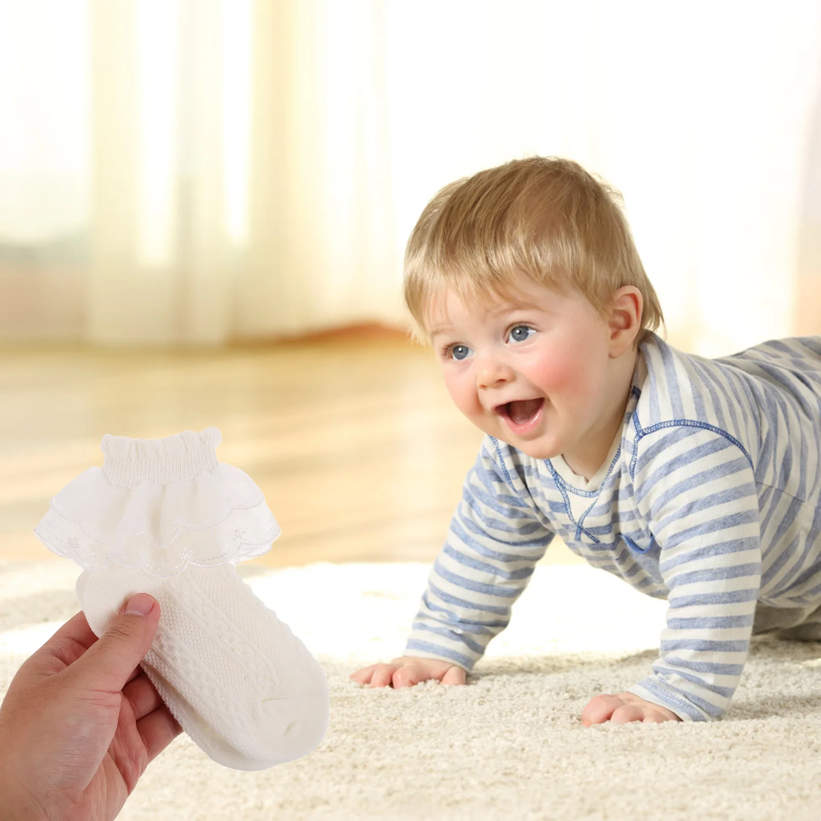 DescripciónDiseñados pensando en la comodidad y el estilo, estos calcetines cuentan con delicados detalles de encaje y volantes que los hacen destacar.Son para niñas a las que les encanta disfrazarse para clases de baile o reuniones familiares.El fino material de algodón garantiza que los pies de su hijo se mantengan frescos y cómodos, lo que los hace ideales tanto para actividades en interiores como al aire libre.calcetines con volantes de encaje