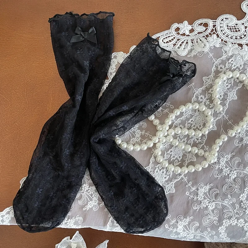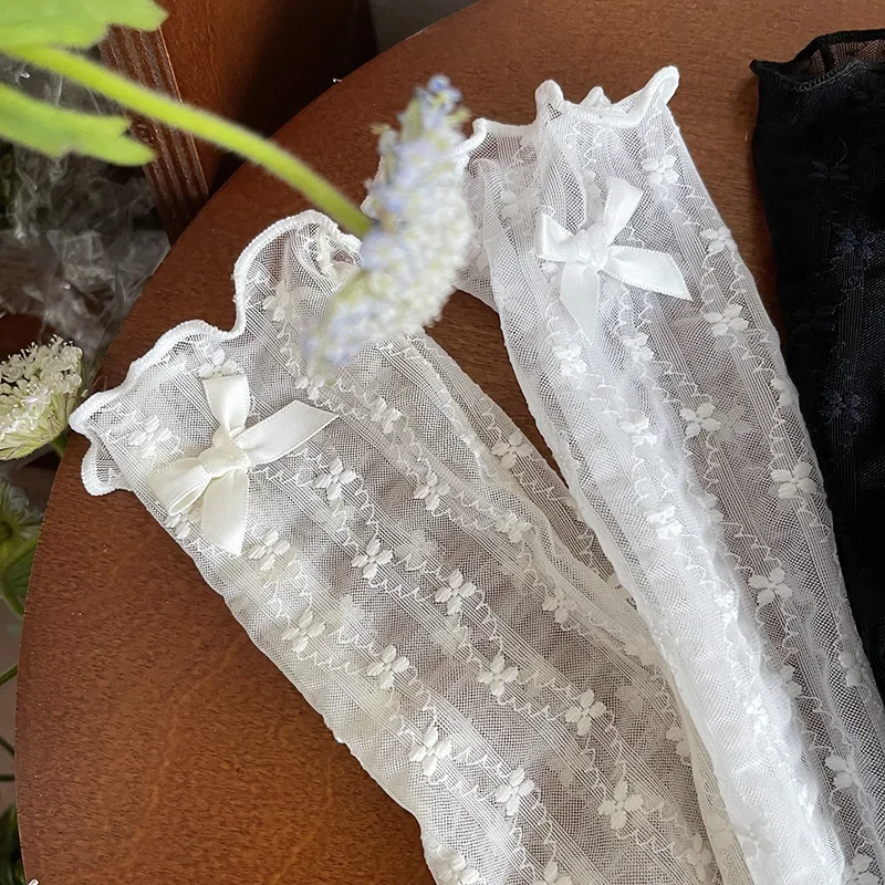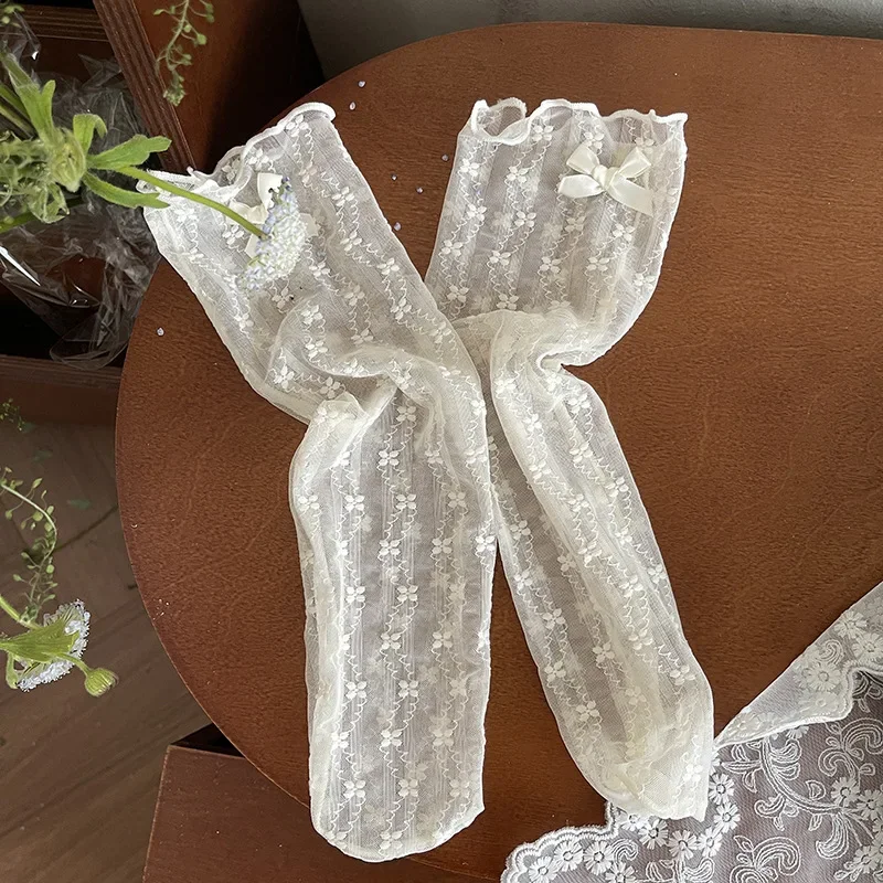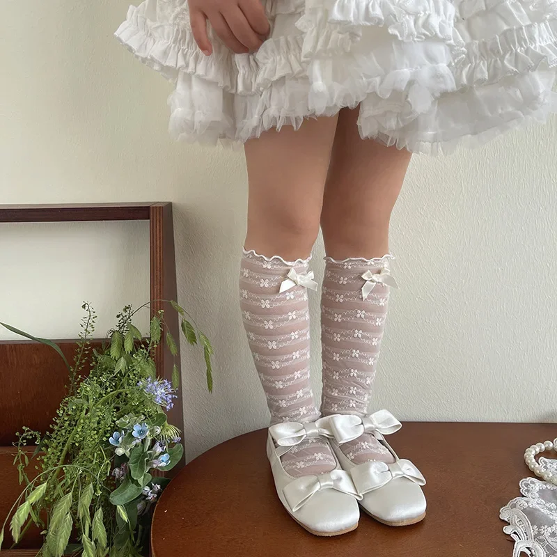 2 pares de calcetines transparentes de encaje con flores para niños y niñas, calcetines de Jacquard con lazo Floral dulce, calcetines escolares ligeros y transpirables a la moda