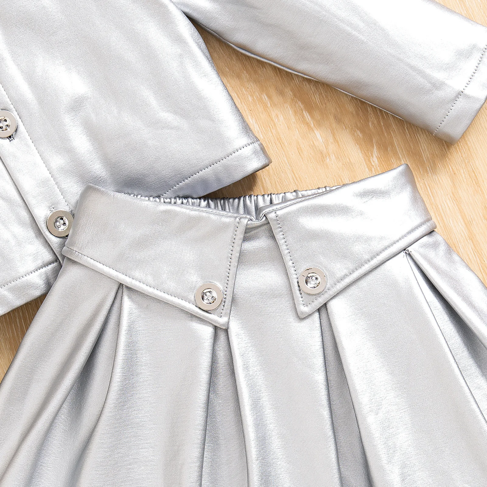 2 piezas 2025 primavera otoño ropa de niña moda coreana manga larga PU Tops + falda conjuntos para niños Boutique ropa para niños B111