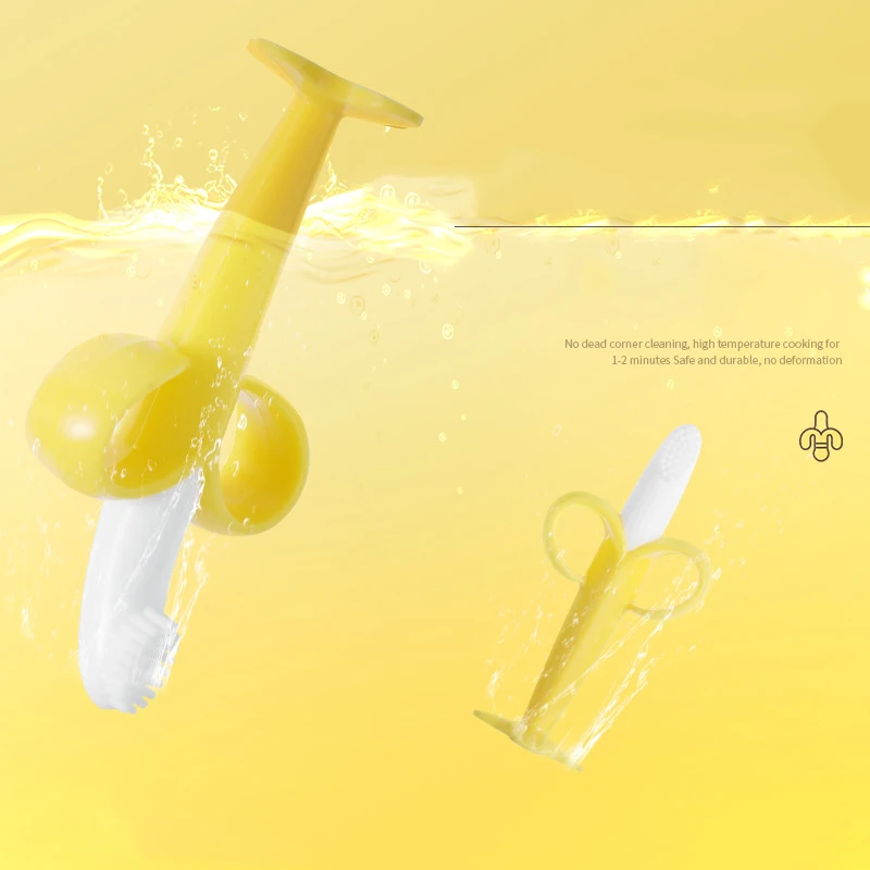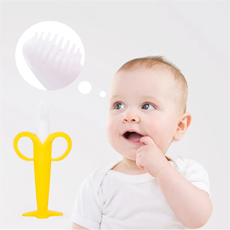 Comprar 2 uds. Cepillo de dientes de silicona para entrenamiento de dentición para bebé, sin BPA, forma de plátano, mordedor seguro para niños, juguetes para masticar, mordedores, calma las encías de los bebés