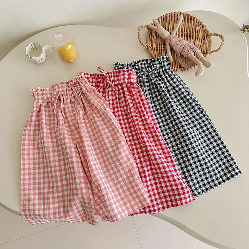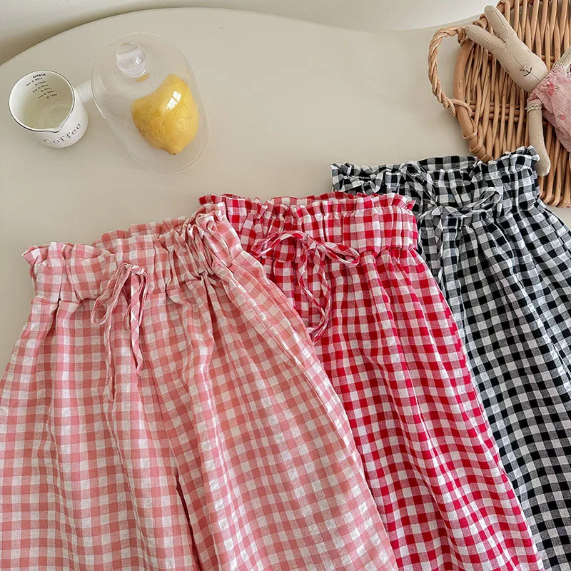 2 uds. Chaleco con estampado de animales para niñas lindas de verano + pantalones a cuadros para niños pantalones de pierna ancha cintura de flores - imagen 5