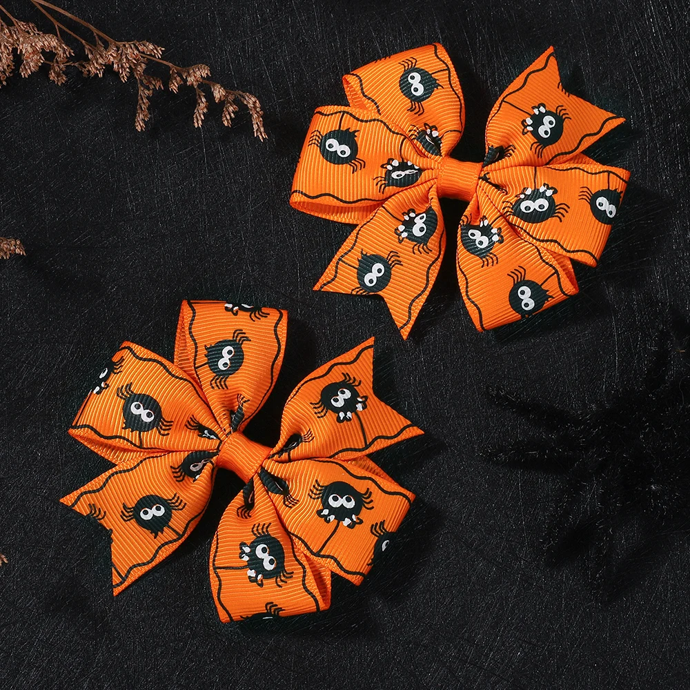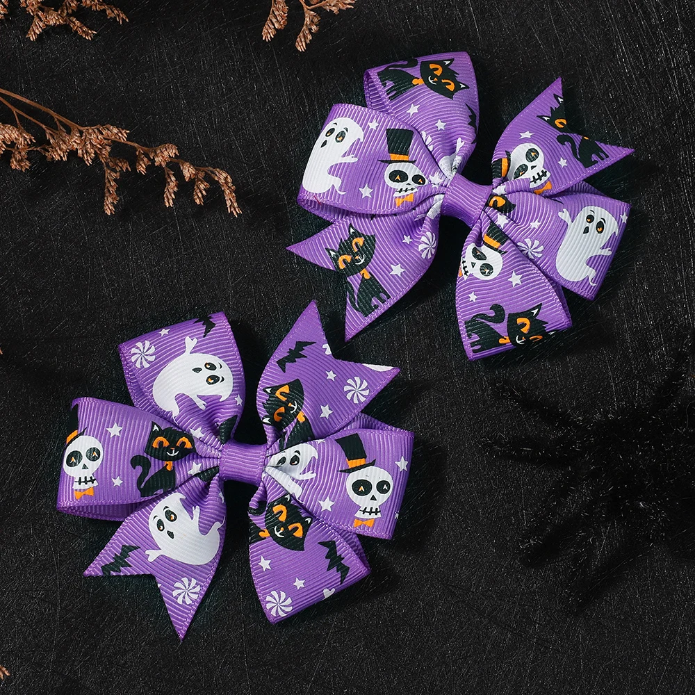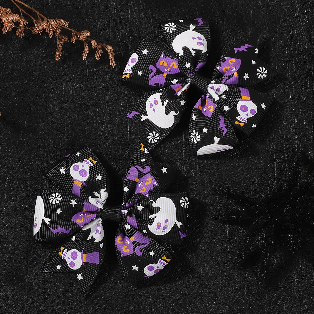 2 uds. De lazos para el pelo de Halloween, pinza para el pelo para niñas, bebé, calabaza, estampado de fantasma, horquilla con lazo, accesorios para el cabello para niños pequeños, regalos