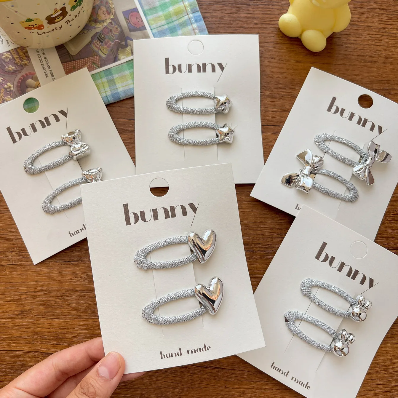 2 uds nuevo plata brillante lazo de seda amor niños BB Clip flequillo Simple Clipheadwear niñas niños accesorios para el cabello