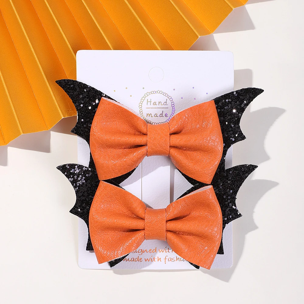 2 uds pasadores de Halloween Clips para el cabello con lazo de ala de murciélago Clips de flequillo para niñas para actuación de fiesta tocado pasadores sombreros de Cosplay