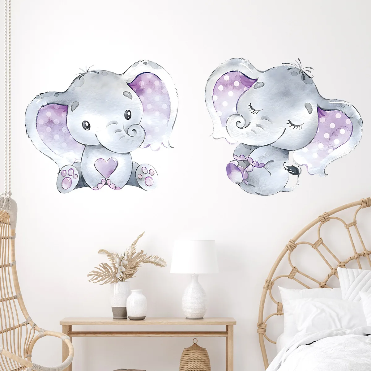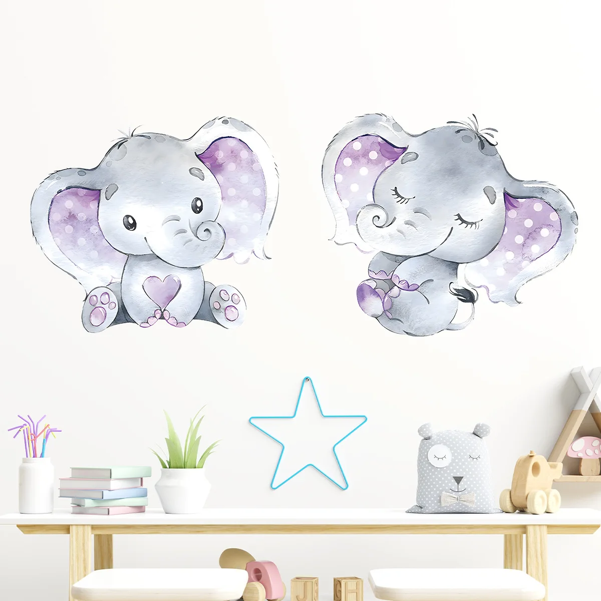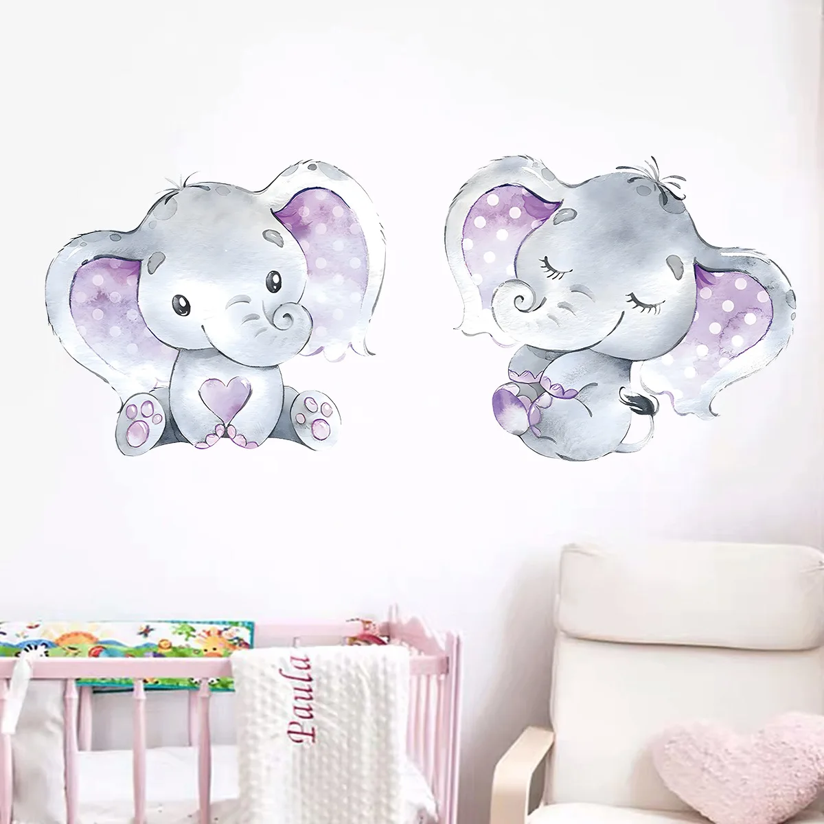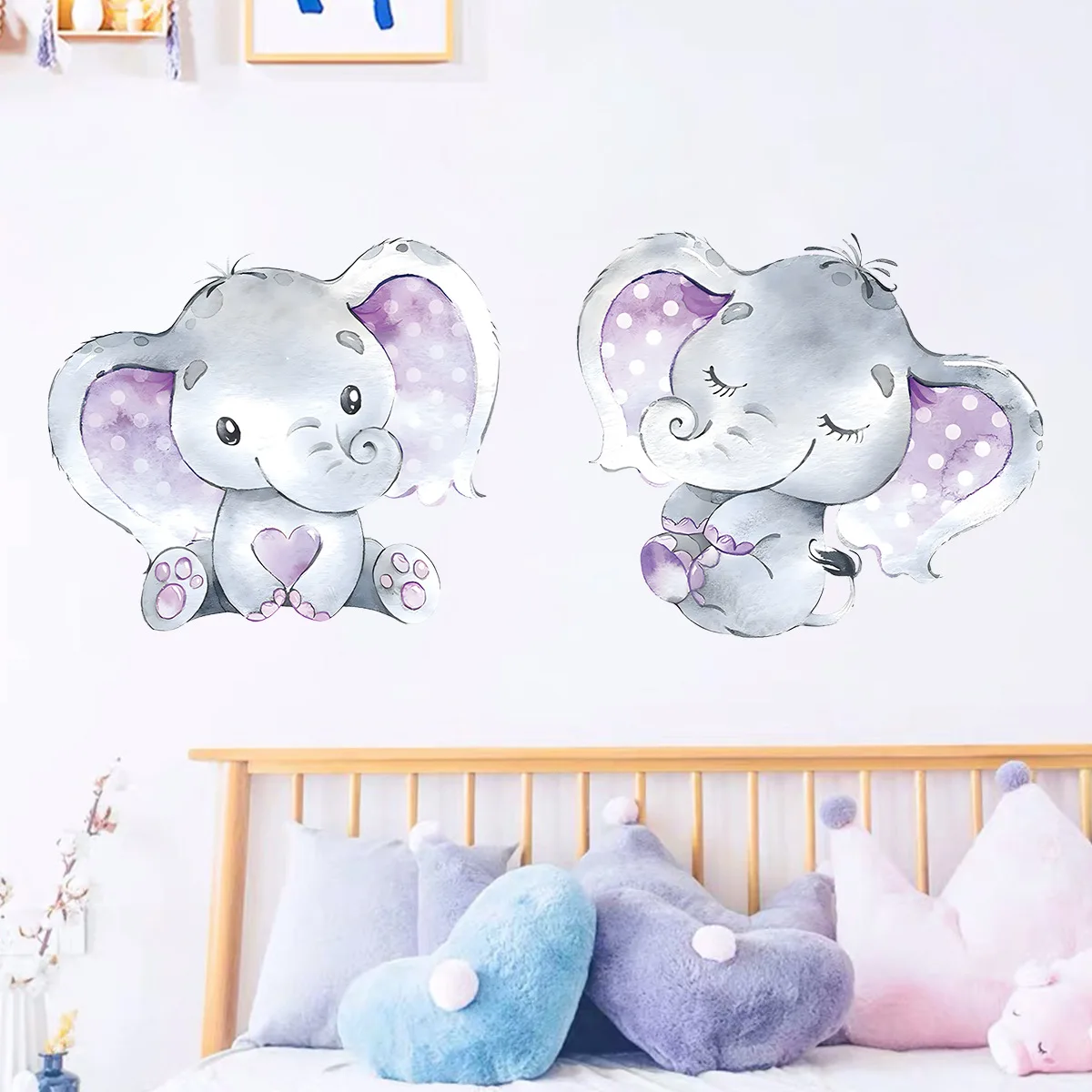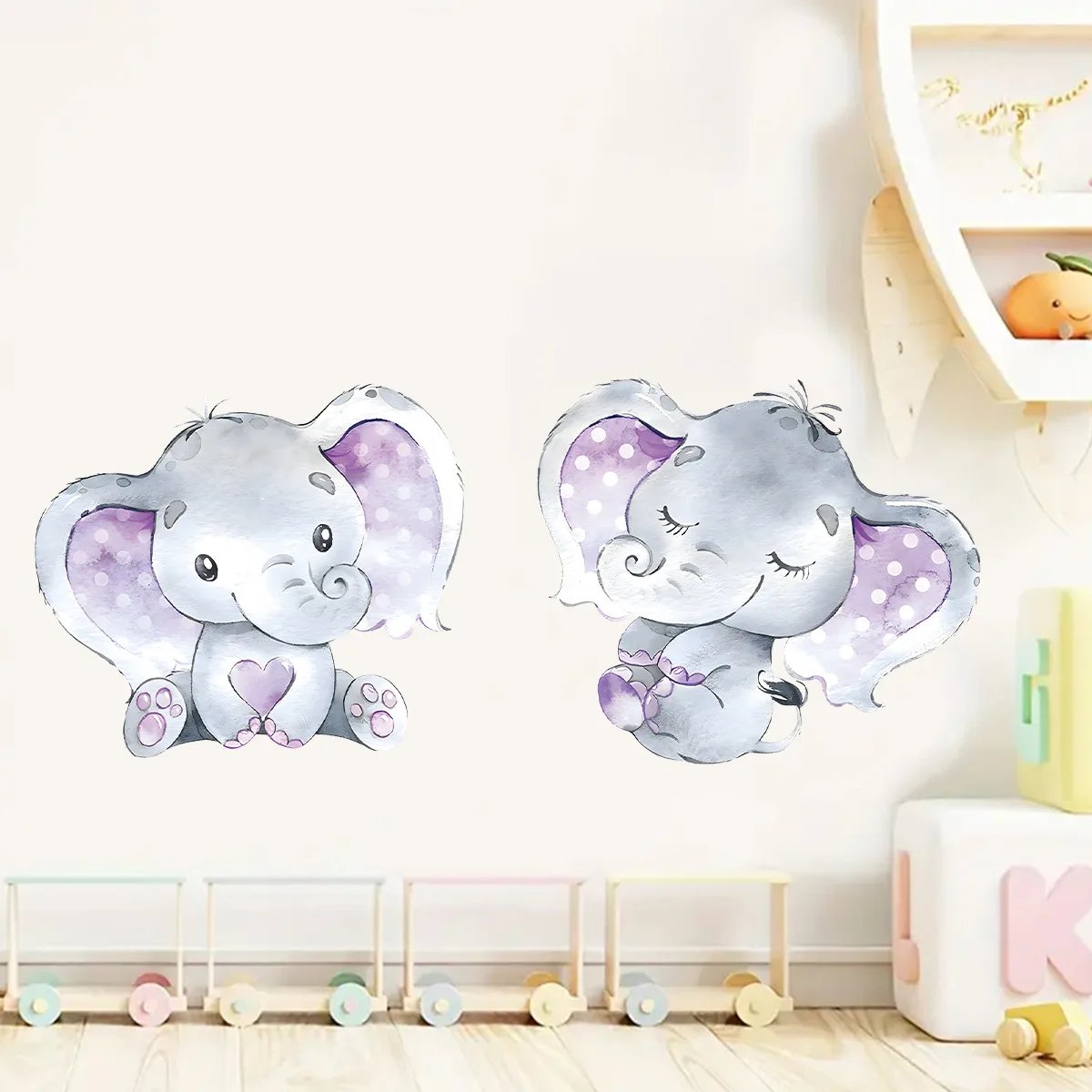 Comprar 2 uds pegatinas de pared de elefante bonito, calcomanías de pared del dormitorio para habitación de niños, pegatinas de decoración de pared de dibujos animados, papel tapiz artístico de pared para guardería de bebé