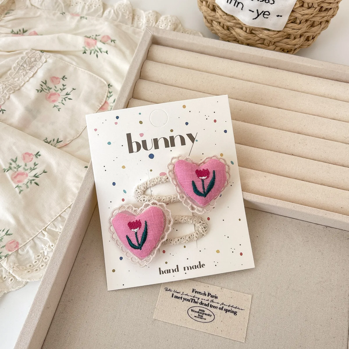2 uds. Pinzas para el cabello con forma de corazón para niñas, horquillas con flequillo bordado de flores, pasadores de Clip LATERAL para el cabello, accesorios para el cabello para niños