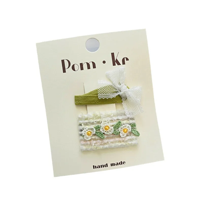 2 unid/set de pinzas para el cabello de tela Ins de moda coreana para niños y niñas, pasadores con lazo Floral de Color verde y amarillo, accesorios bonitos para el cabello