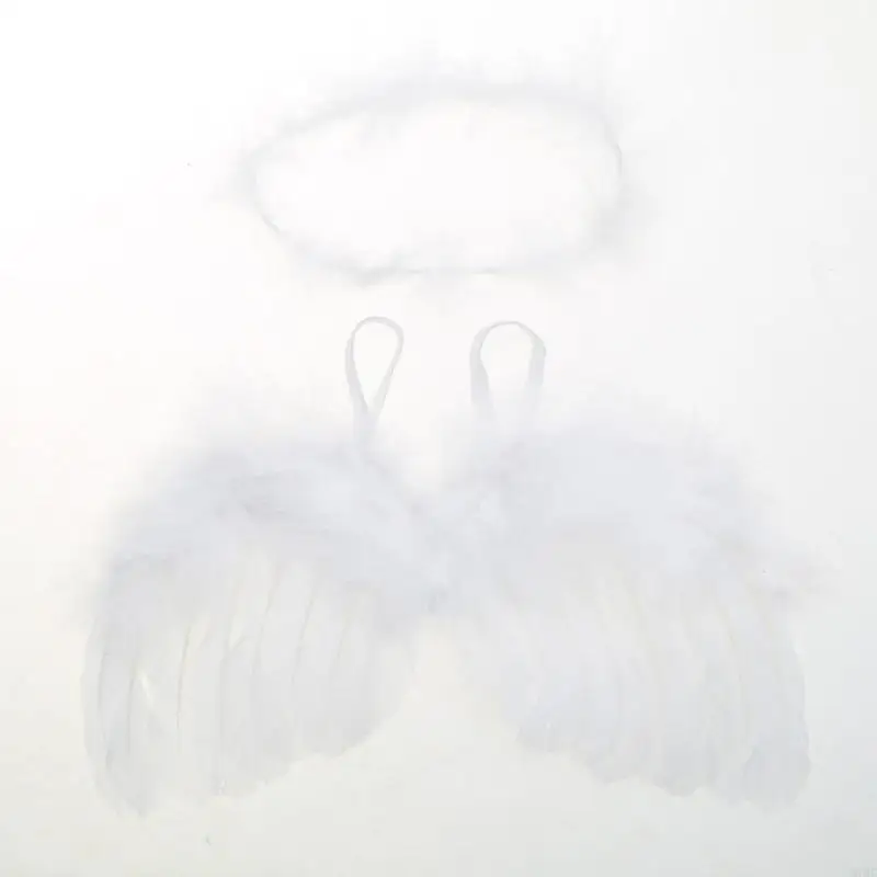 2 unids/lote de alas de plumas de Ángel para bebé recién nacido con diadema, traje infantil, accesorios para fotos, disfraz de Halloween Unisex - imagen 5
