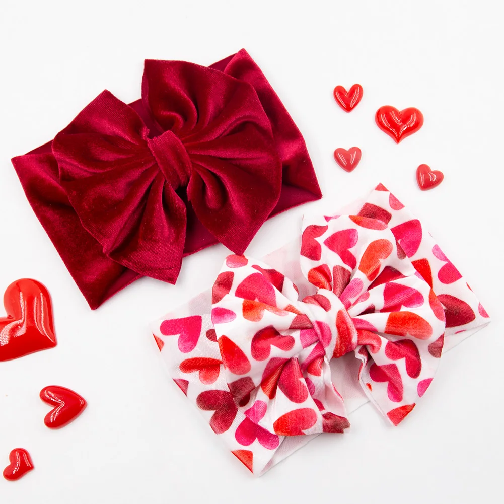 Comprar 2 unids/lote de diademas de terciopelo para el Día de San Valentín para bebé, accesorios de fotografía de regalo, lazos grandes en forma de corazón, diademas coreanas para niños, accesorios para el cabello