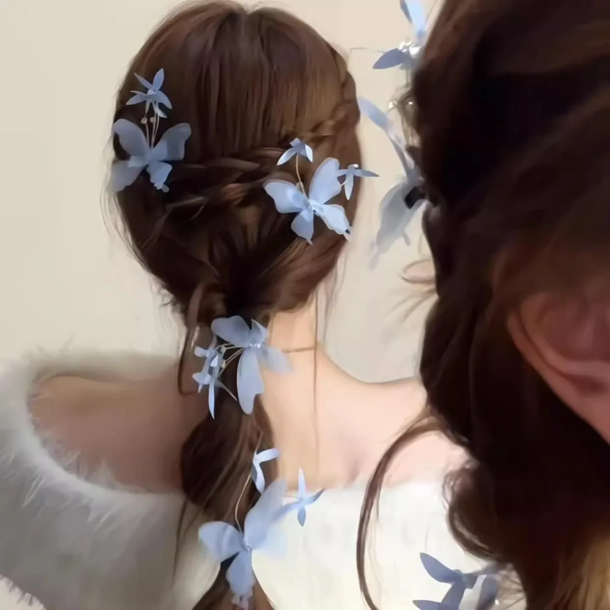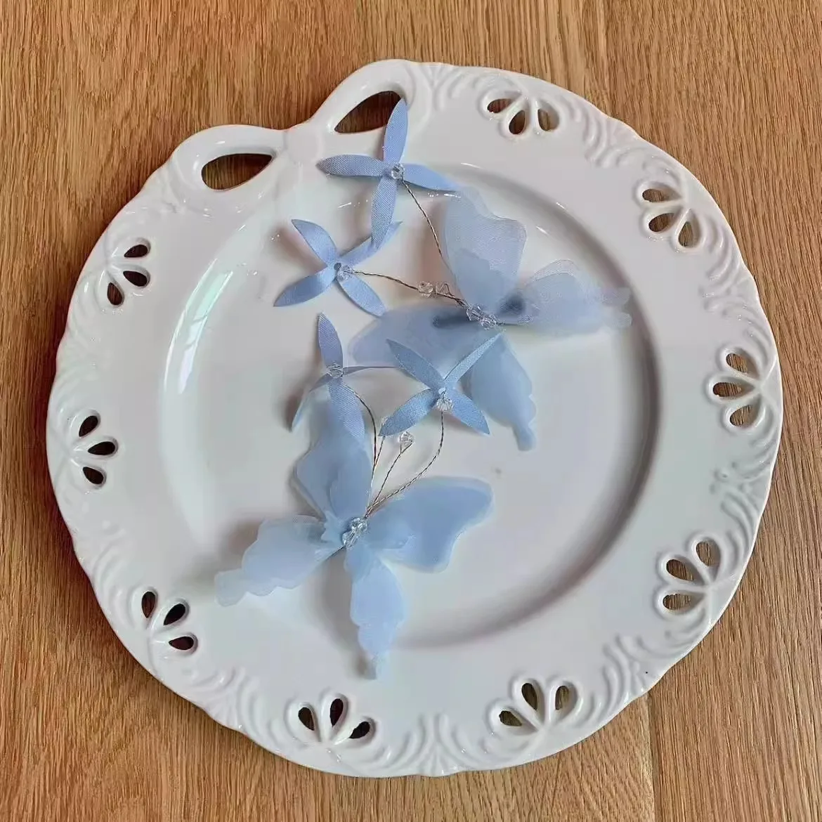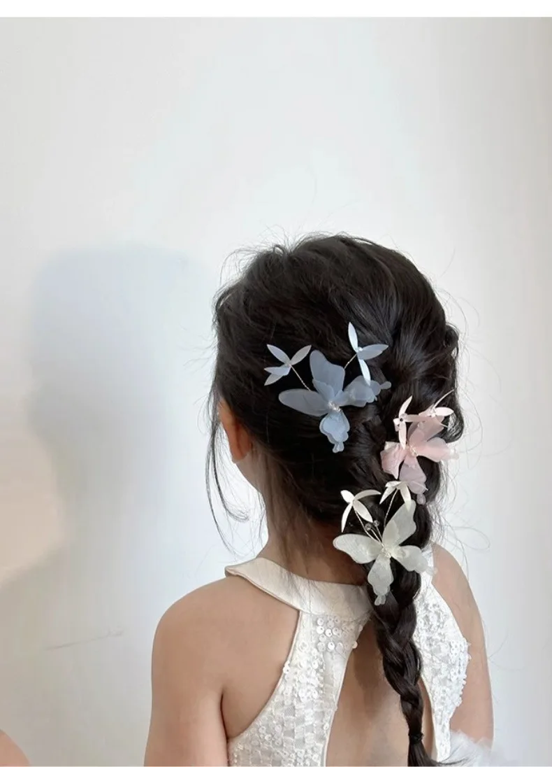 2 unids/set de Clip de pelo de mariposa de malla, flequillo lateral, Clip de pico de pato, sombreros para niñas, horquilla coreana rosa, azul y blanca, accesorio para el cabello para niños