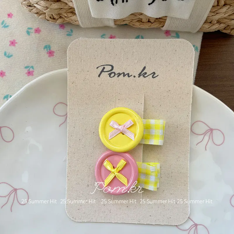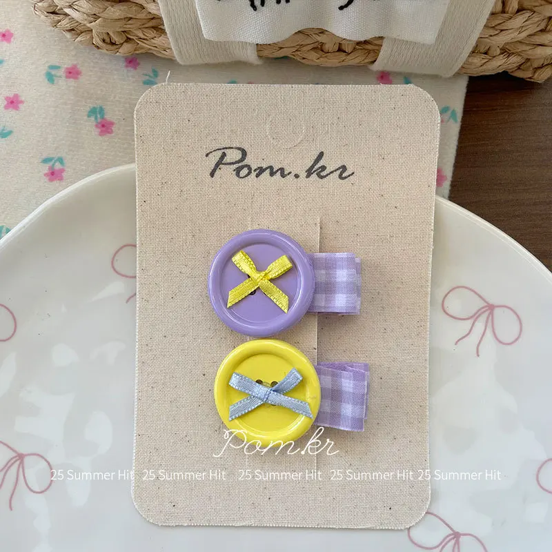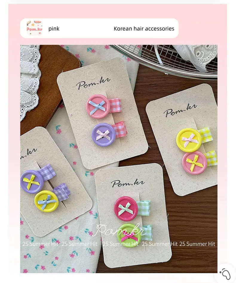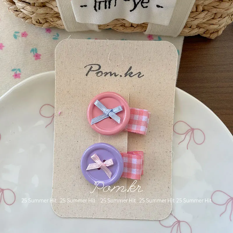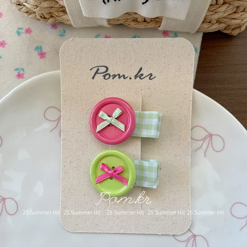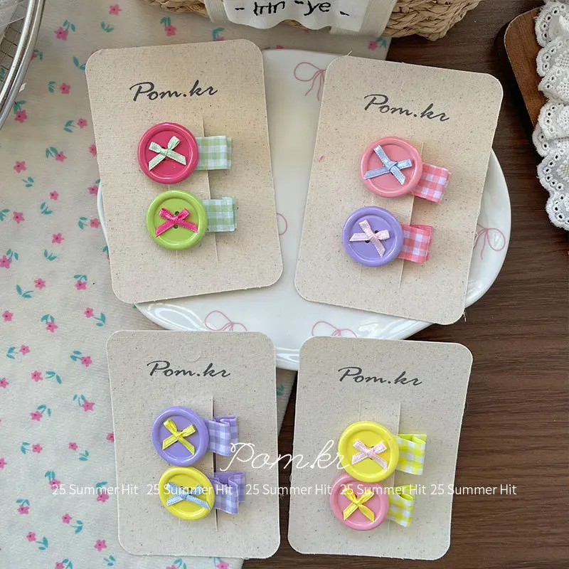 2 unids/set coreano lindo botón pinzas para el cabello arco estilo dopamina horquillas para niños niñas flequillo lateral Flyaways colorido Clips para la frente