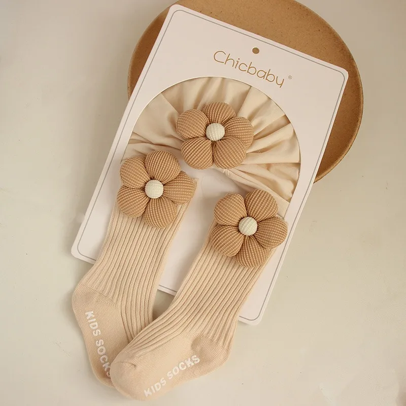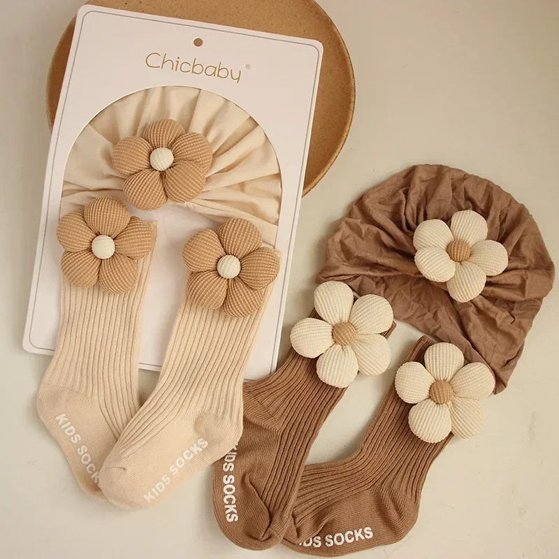 2 unids/set gorro y calcetines para bebé recién nacido conjunto de calcetines de tubo medio con flores bonitas + gorro de turbante gorros indios suaves regalo para bebé de 0 a 12m
