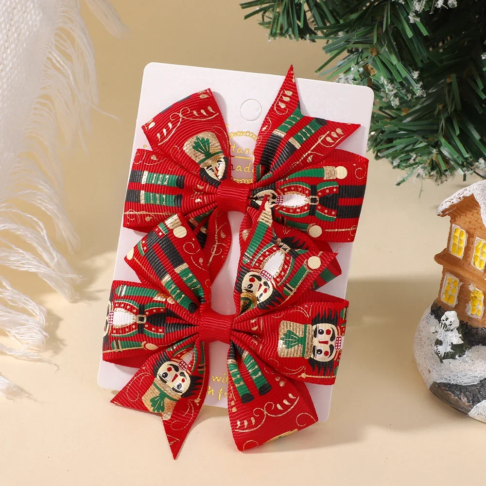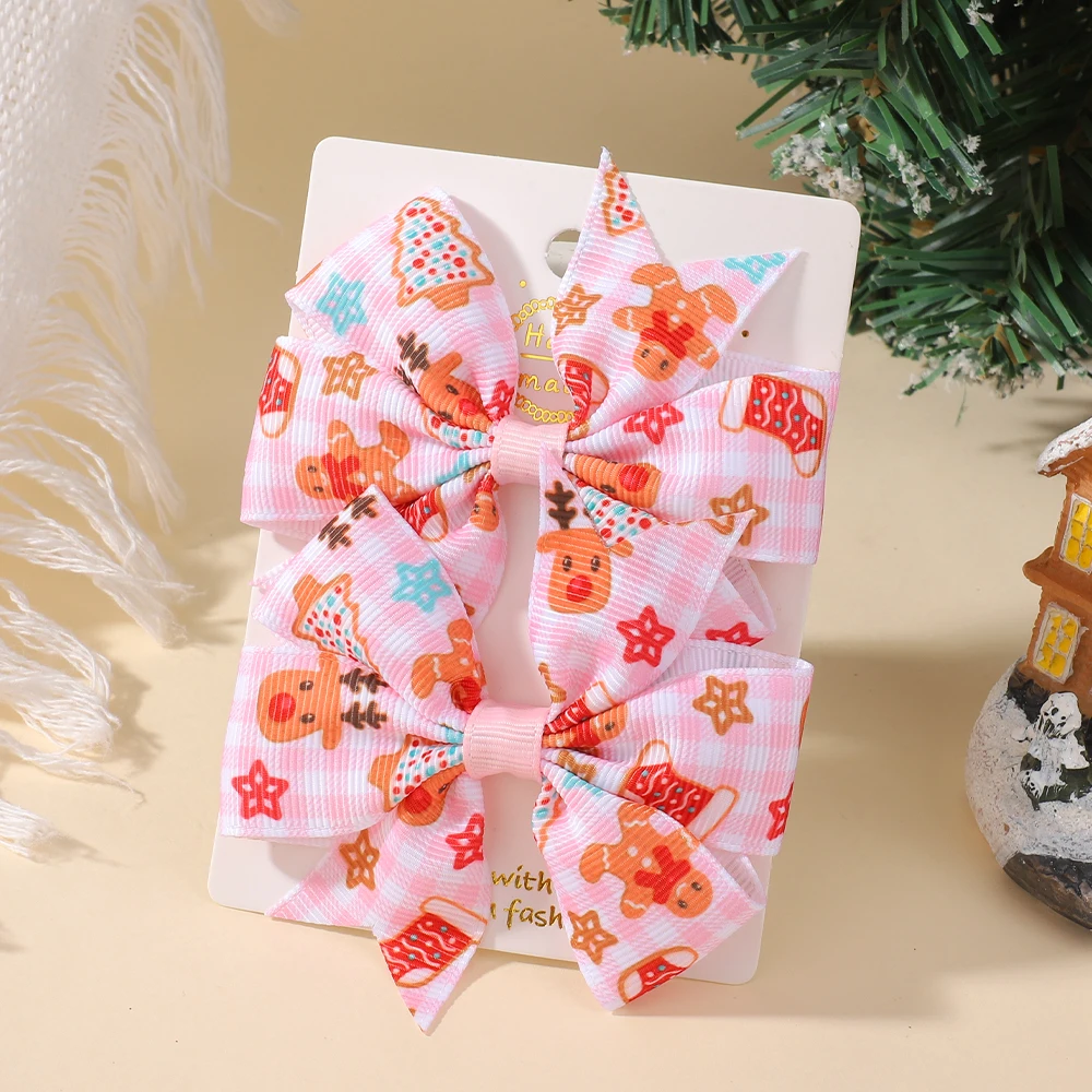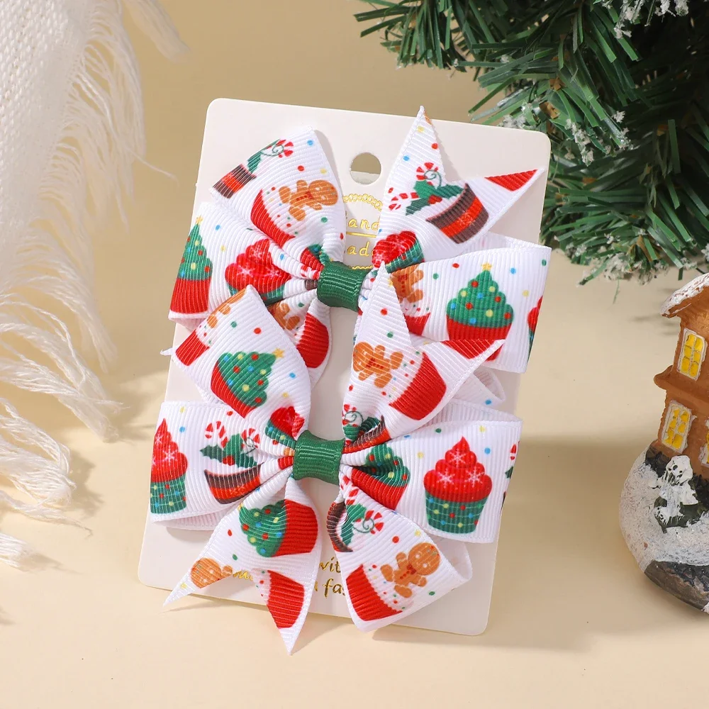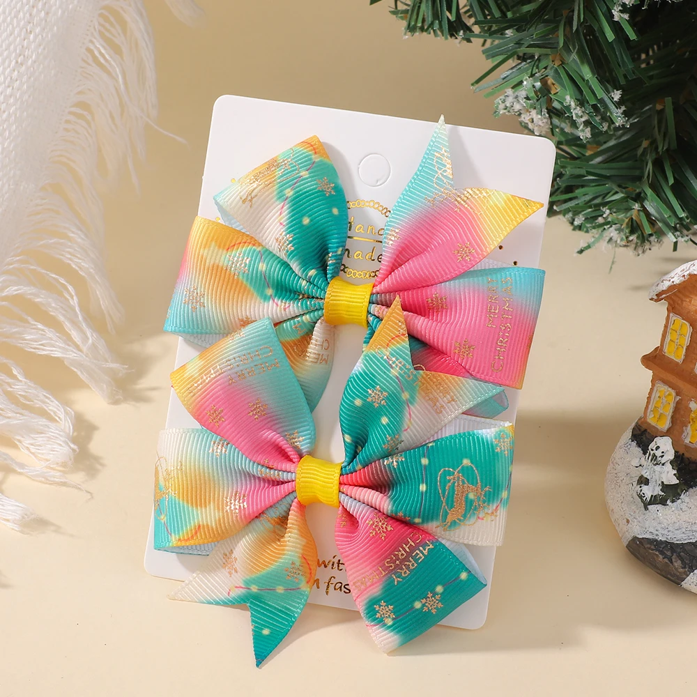 2 unids/set de lazos navideños para el cabello para niñas con Clips, horquillas festivas con cinta de Papá Noel de 3,22 pulgadas, molinete, accesorios para el cabello para vacaciones para niños