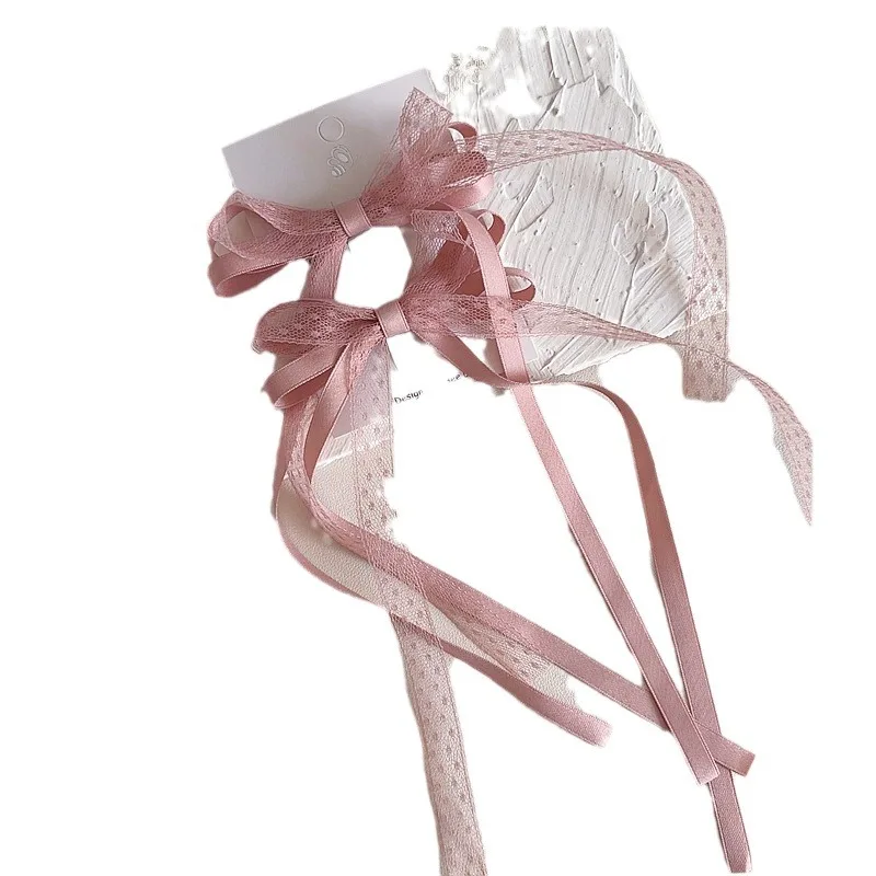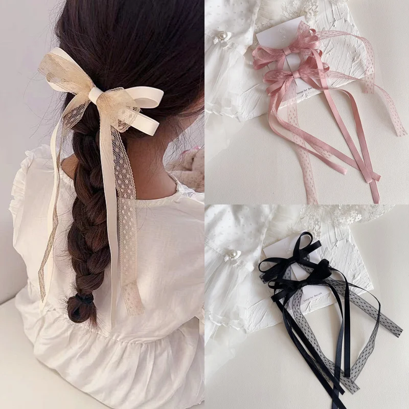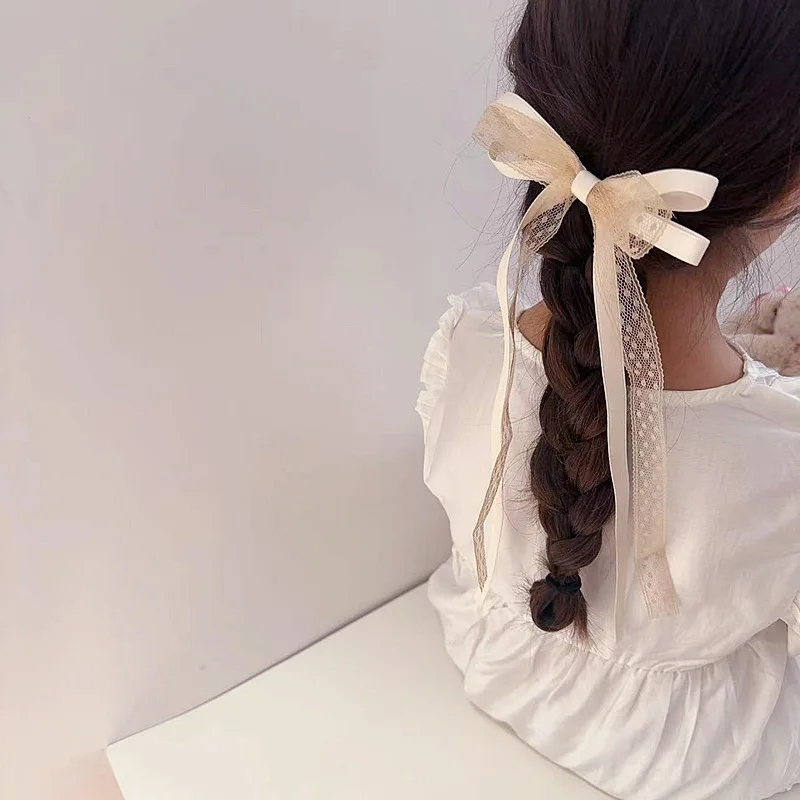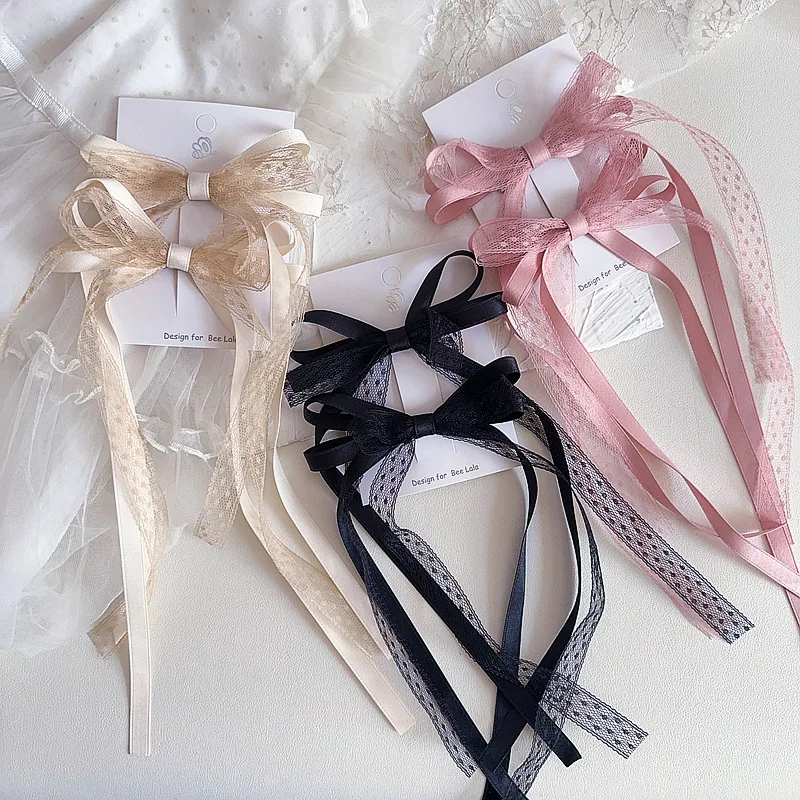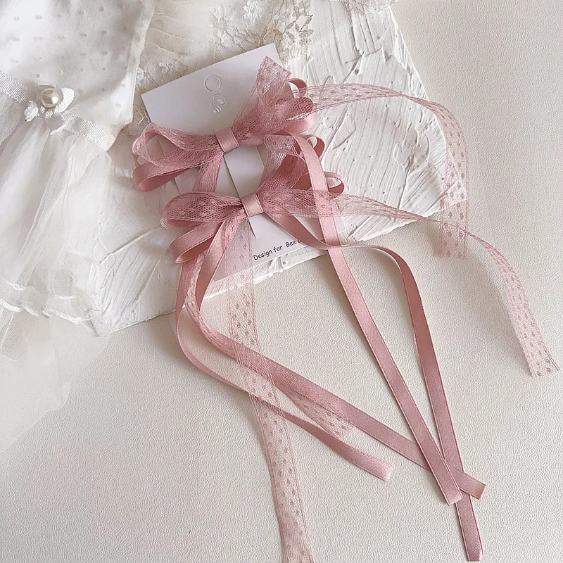 2 unids/set de pinza para el pelo de encaje dulce para niña, cinta con lazo coreano elegante, pasador para el pelo para niña, tocado para el pelo de princesa encantadora para niños