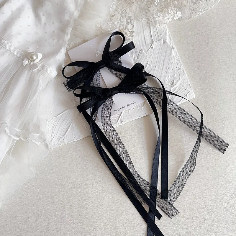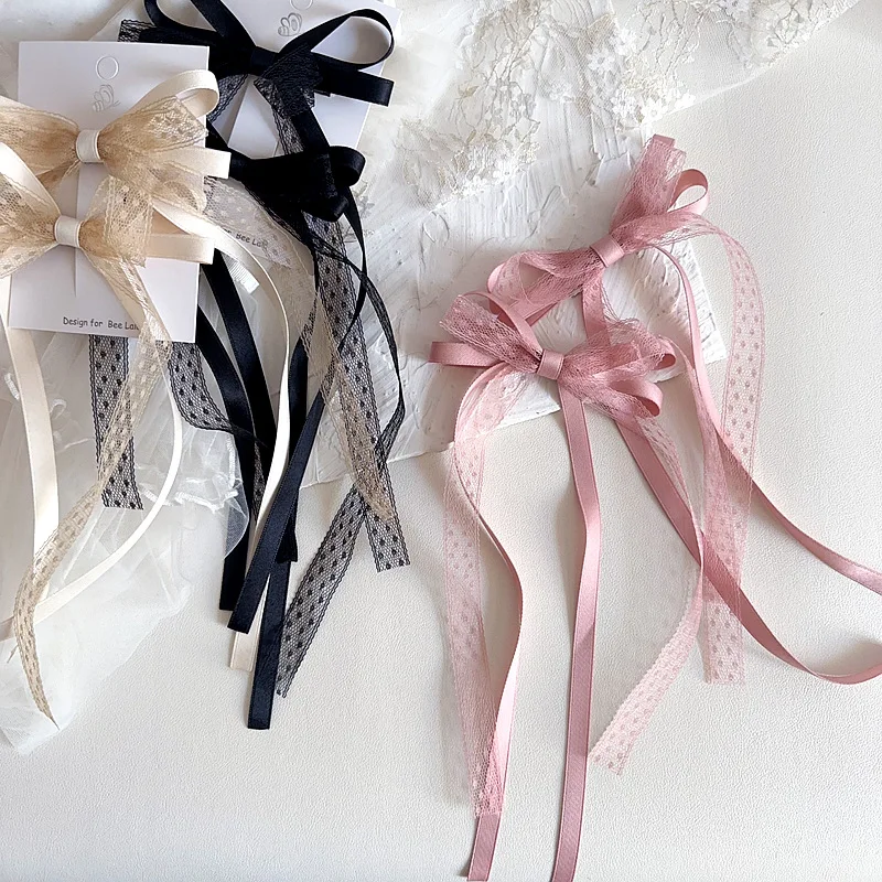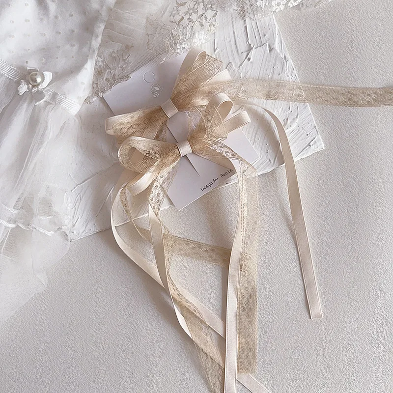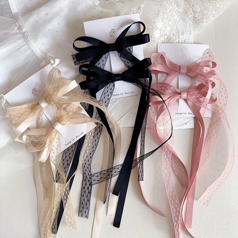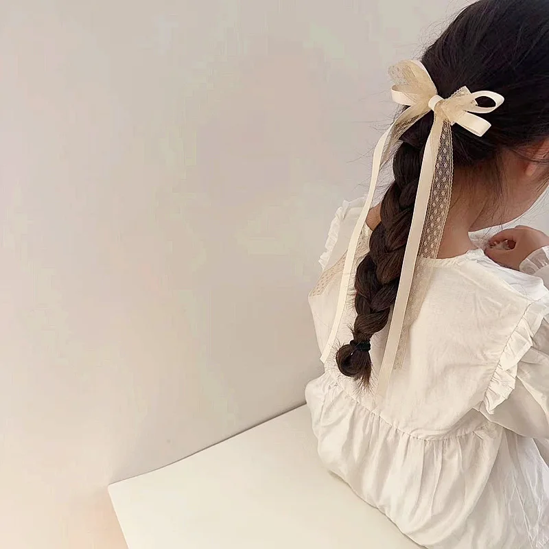 2 unids/set de pinza para el pelo de encaje dulce para niña, cinta con lazo coreano elegante, pasador para el pelo para niña, tocado para el pelo de princesa encantadora para niños