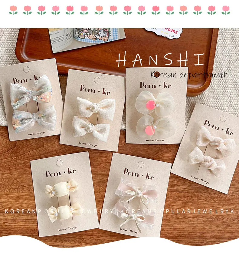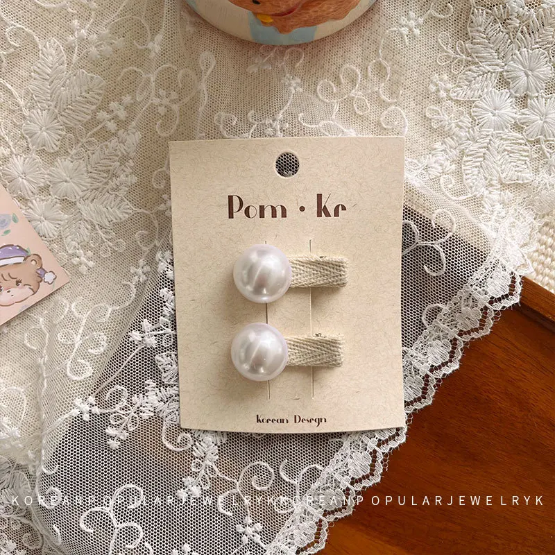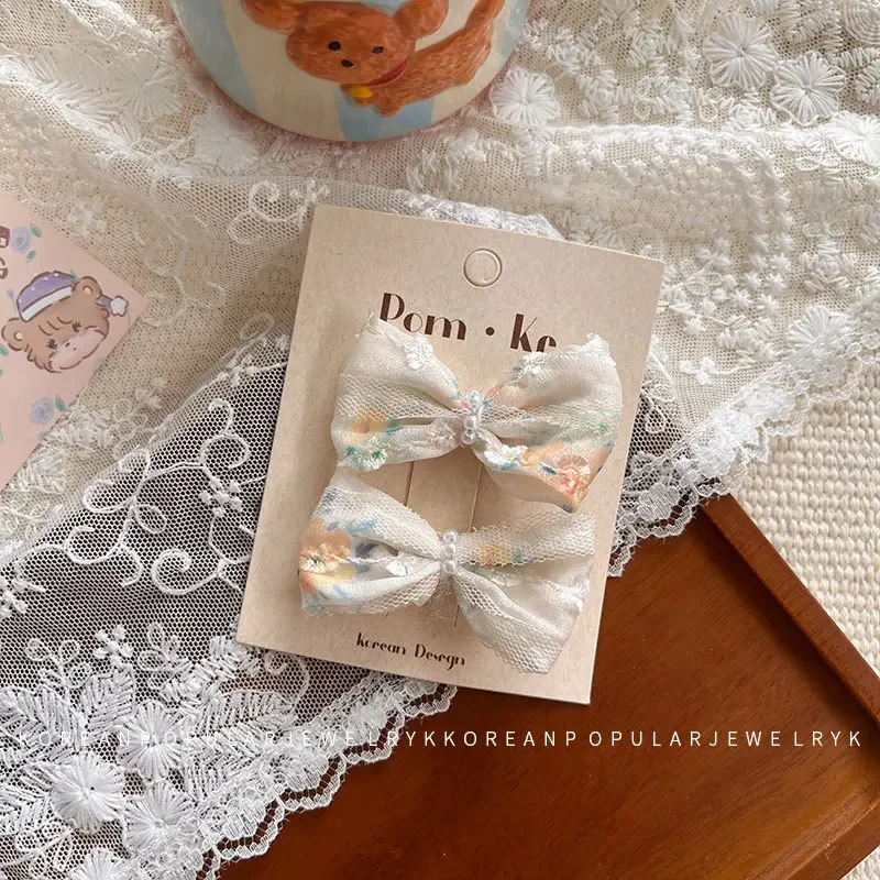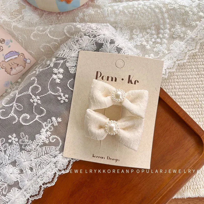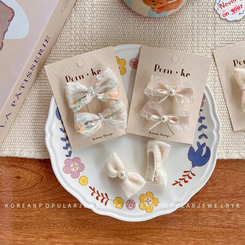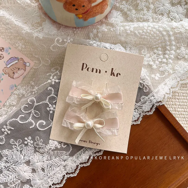 2 unids/set de pinzas para el cabello para bebés y niños, Clip con lazo de encaje de perlas, diseño trasero para bebés, accesorios para el cabello de princesa coreana