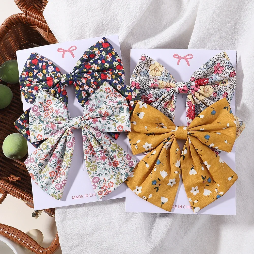2 unids/set de pinzas para el cabello con lazos bordados, horquillas sólidas para niñas, pasadores de cinta hechos a mano, pasador de pelo de mariposa para niños, sombreros coreanos