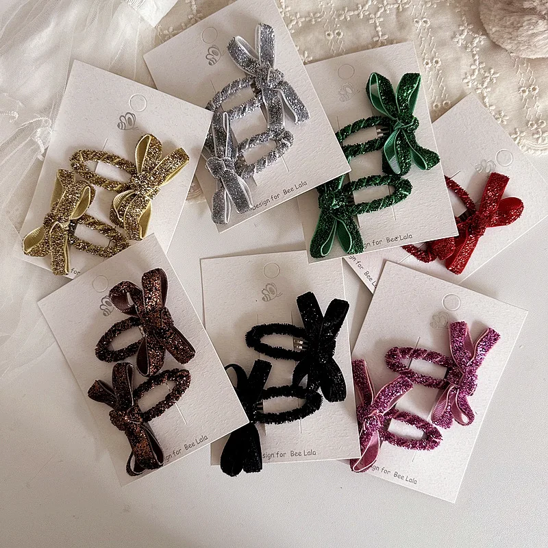 Comprar 2 unids/set de pinzas para el pelo con purpurina para niña, lazo de moda navideña, Clip LATERAL, pasador para el pelo de Color sólido brillante, accesorios para el cabello para niños