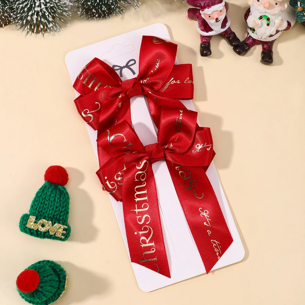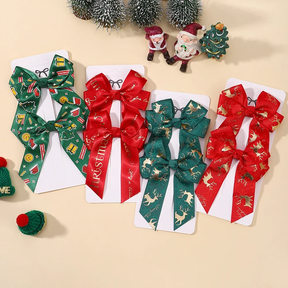 2 unids/set de pinzas para el pelo con lazo de Navidad para niñas, horquillas simples para animar, pasadores de moda, accesorios para el cabello