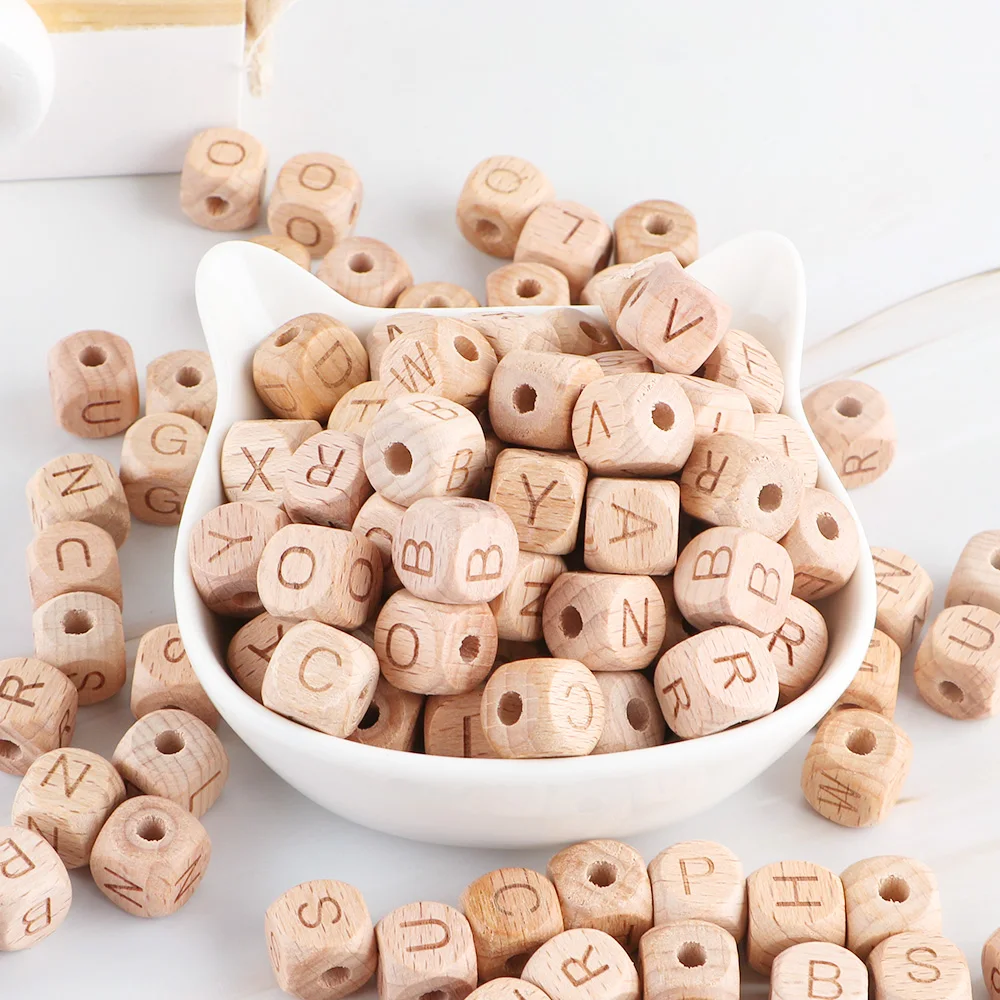 Alfabeto inglés cuadrado con cuentas de madera de haya