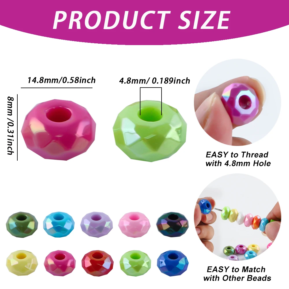 20/50 Uds. Cuentas de rueda espaciadoras acrílicas coloridas con agujero grande redondo de 15mm para fabricación de joyería DIY collar pulsera pendiente accesorio