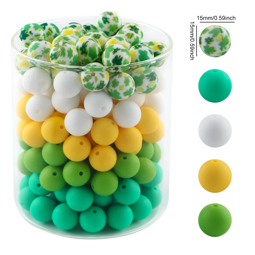 Comprar 20-50 Uds. Cuentas de silicona de estilo del Día de San Valentín de 15MM, mezcla de cuentas estampadas para fabricación de joyería, llavero DIY, pulsera, collar, accesorios