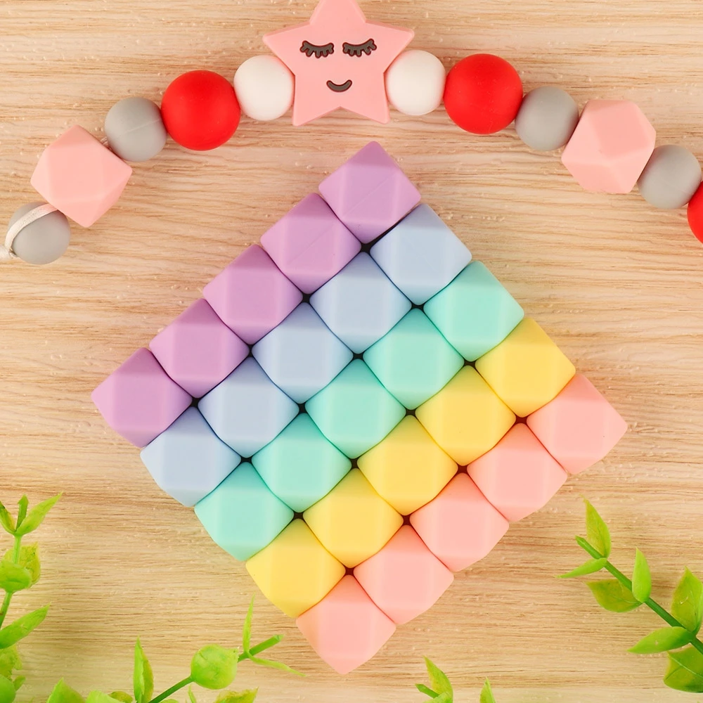 Comprar 20 piezas cuentas hexagonales de silicona, perlas de 14/17mm, DIY, Clip para chupete, collar de cadena para fabricación de joyas, Mini cuentas de silicona de calidad alimentaria