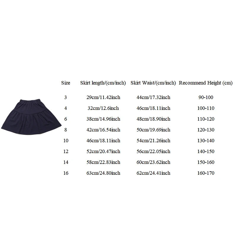 2024 Falda para niñas, camisa de infancia y top, falda plisada azul marino para niñas grandes, tallas 4-16 años, ropa de algodón, falda hasta la rodilla
